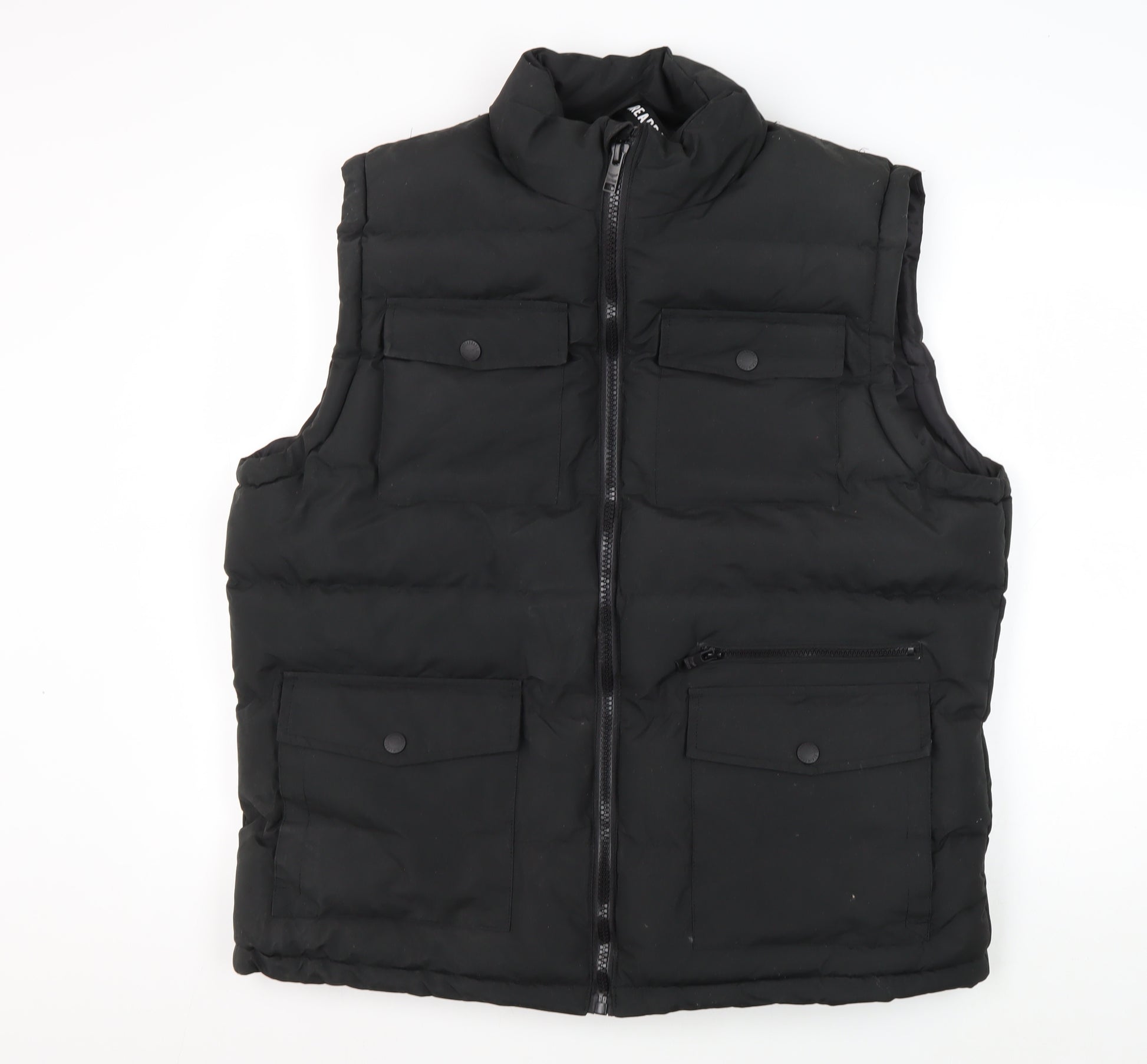 Stay stylish and warm with this classic men's puffer waistcoat from Threadbare, designed for those chilly autumn and winter days. Crafted in sleek black, this waistcoat offers both comfort and functionality. Made from 100% polyester, it features a stand-up collar and zip closure with convenient zipped pockets, making it a must-have layering piece for casual occasions. The waistcoat is designed in a classic fit and regular size type, ensuring it complements any wardrobe. Being machine washable, it also promises easy care and maintenance. Whether you're heading out for a leisurely walk or need a warm layer for a casual outing, this Threadbare puffer waistcoat is the perfect choice to keep you cosy and stylish throughout the season.