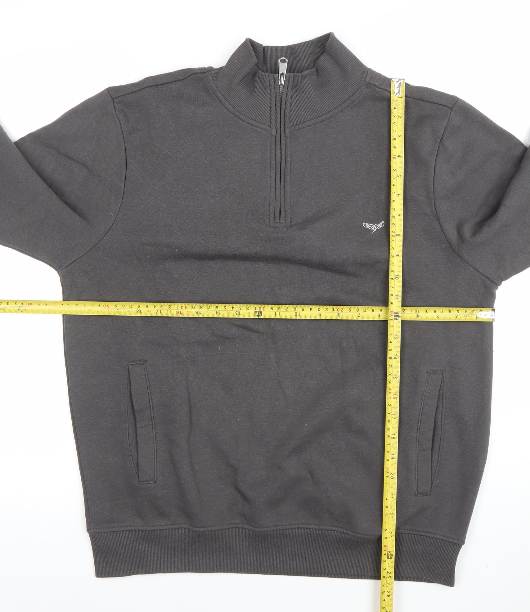 Men's Grey 1/4 Zip Sweatshirt M High Neck Casual
