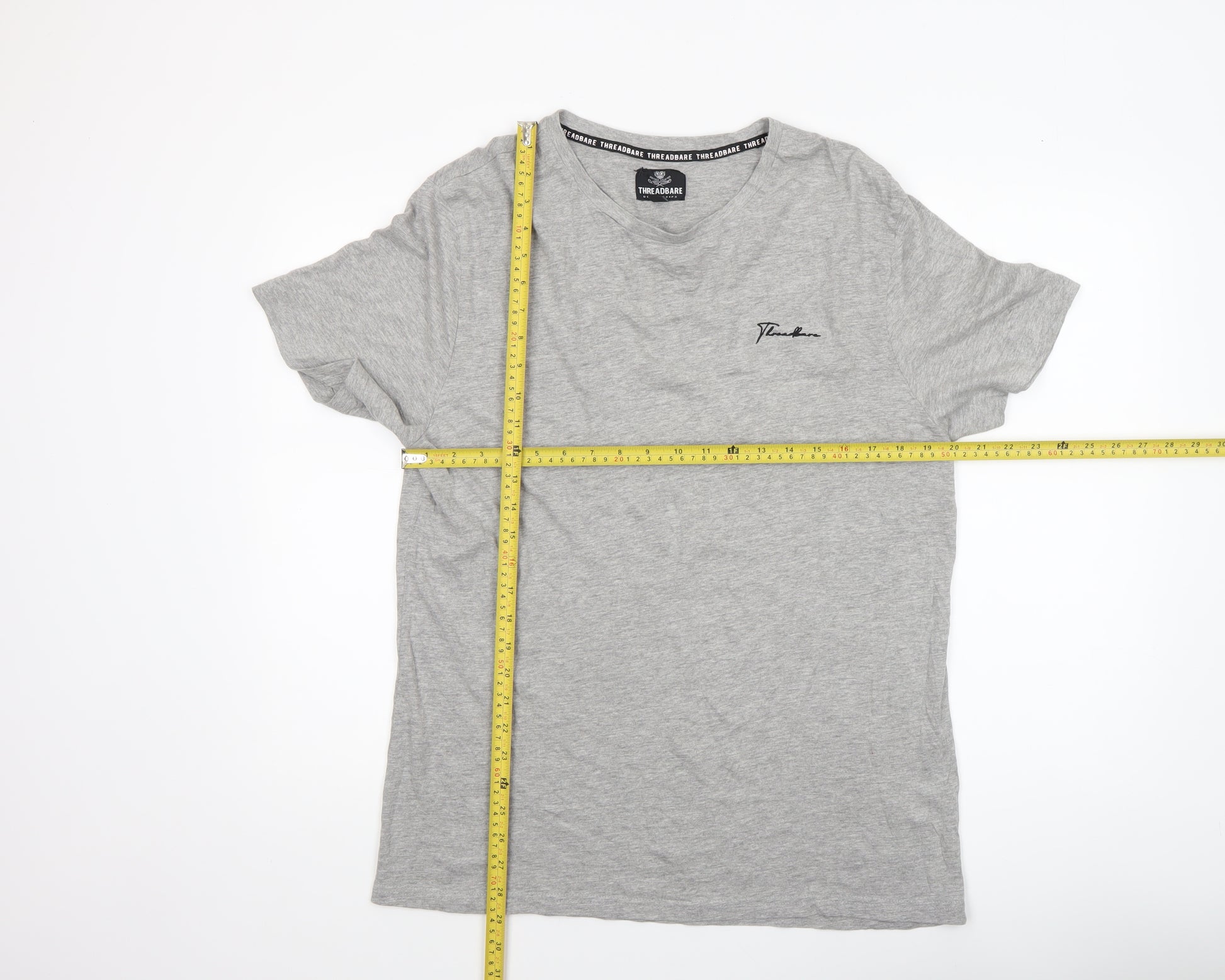 This Threadbare Men's Grey V-Neck T-Shirt is a wardrobe staple that delivers effortless style, comfort, and versatility. Crafted from a soft jersey fabric made of 60% cotton and 40% viscose, it offers a lightweight and breathable feel that's perfect for any casual occasion. The clean solid grey colour gives it a modern minimalist look, enhanced subtly by a small embroidered Threadbare logo at the chest, adding a touch of brand authenticity and understated appeal. Designed in a regular fit, it provides both comfort and a flattering silhouette that suits most body types, making it ideal for daily wear. The short sleeves and V-neck design enhance its relaxed yet polished style, pairing easily with jeans, shorts, or chinos for an easy-going outfit suitable for any season, particularly summer. Machine washable for practicality, this T-shirt is made to last with quality stitching and soft-touch fabric that maintains comfort throughout the day. Whether you’re heading out for a casual outing, weekend errands, or simply relaxing at home, this Threadbare tee is a reliable go-to piece that combines simplicity with quality craftsmanship. The garment shows minimal signs of prior wear but remains in excellent condition, reflecting good care and ensuring continued value. Ideal for those seeking functional basics with an edge of brand distinction, this piece embodies everyday comfort and subtle modern style. Add it to your essentials collection and enjoy a comfortable, stylish T-shirt that effortlessly complements your daily wardrobe.