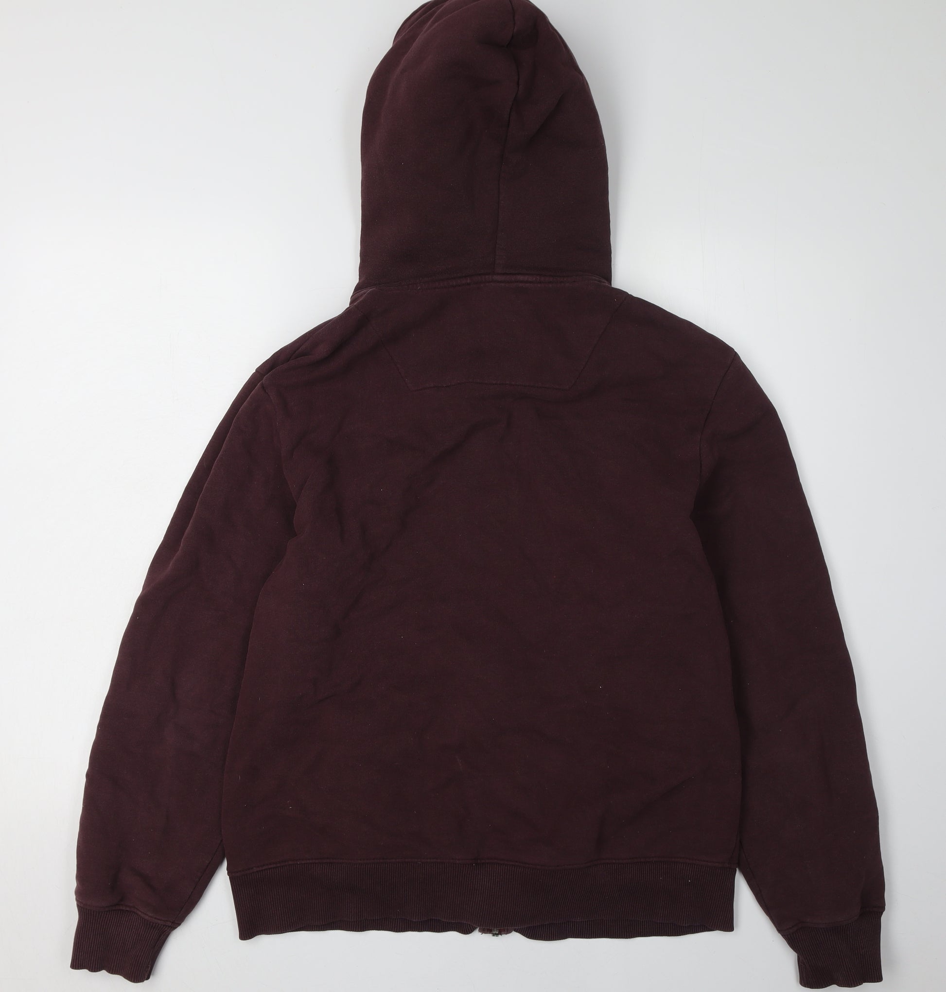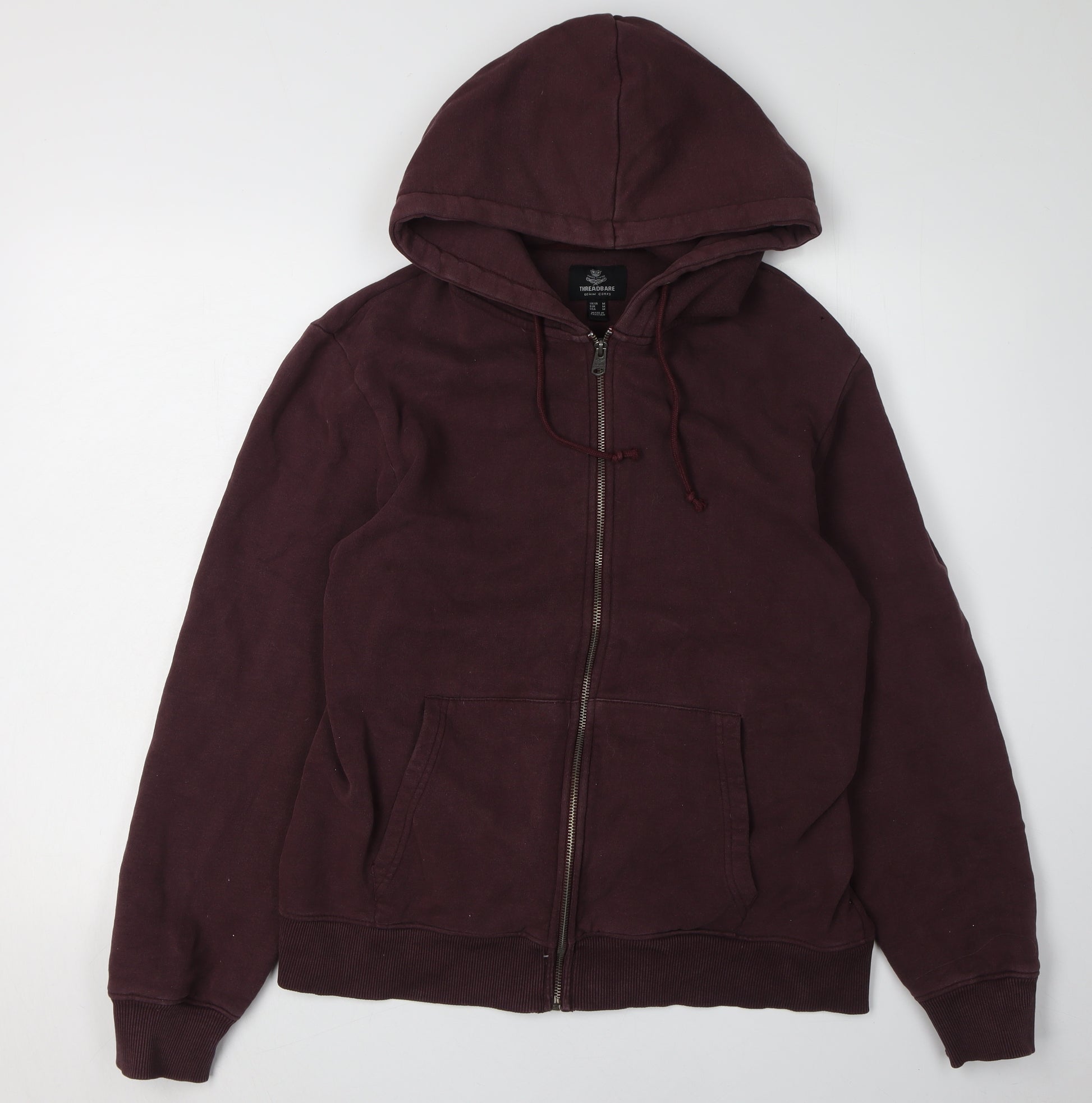 Wrap up in comfort and style with this Threadbare Men's Full Zip Hoodie, a perfect addition to any wardrobe for the colder months. Designed in a rich red hue, this hoodie brings a pop of colour while maintaining a classic look that's suitable for everyday wear. Crafted from a soft fleece fabric blend of cotton and polyester, it promises warmth and a cosy feel ideal for autumn and winter seasons.The full zip closure ensures easy wear, allowing you to adjust your comfort effortlessly, while the hood provides extra protection against the elements. Equipped with spacious pockets, this hoodie offers practicality for securing small essentials during a casual stroll or a weekend outing.Made with a regular fit, it accommodates layers underneath without compromising on comfort or style. Whether you're heading out for a casual day or layering up for outdoor activities, this piece adapts to your needs seamlessly.Though previously owned, this hoodie remains in good condition, with a minor imperfection - a small hole on the shoulder, which does not detract from its overall quality and wearability.Embrace a laid-back look with this versatile hoodie, suitable for men who value both functionality and fashion in their everyday apparel.