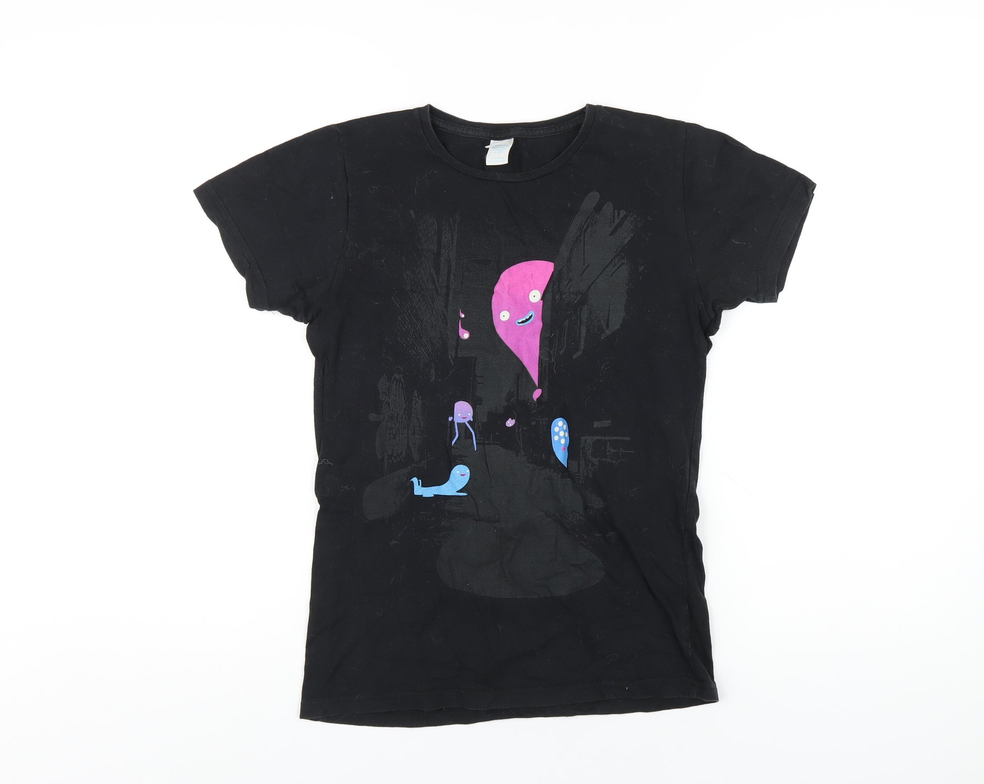 Womens Black Cotton Basic T-Shirt Size M Round Neck