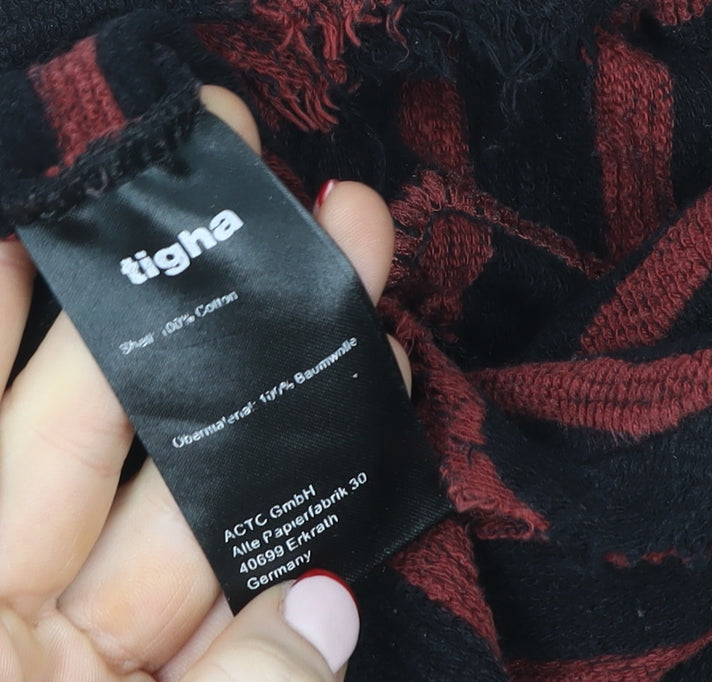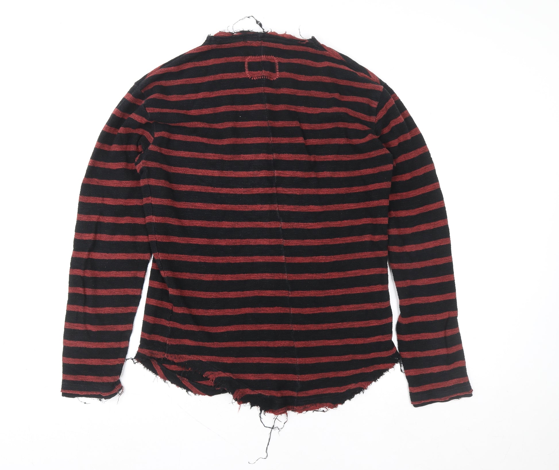 Add a bold edge to your casual wardrobe with this tigha men's striped pullover sweatshirt. Crafted entirely from soft cotton, this breathable knit piece combines comfort and rebellious style. The red and black stripe pattern showcases a timeless rock-inspired look with a contemporary grunge twist, perfect for layering during the autumn and winter months. Designed for a regular fit, it provides a flattering yet relaxed feel, ideal for everyday wear or casual nights out. The crew neck and long sleeves bring classic sweatshirt detailing, while the raw, distressed hems give it a purposely unfinished aesthetic that embodies tigha’s unique, rebellious design ethos. As a lightweight piece, it’s versatile enough for all-season wear, providing comfort without added bulk. Made from 100% cotton, it ensures breathability and softness against the skin. Pair it effortlessly with black jeans and boots for a rock-inspired look, or go casual with joggers and trainers for weekend relaxation. Despite light fabric distressing which enhances its style, this sweatshirt remains in very good condition, reflecting gentle previous wear without flaws. A distinctive addition to any modern wardrobe, this tigha pullover pairs everyday practicality with a refined yet edgy attitude – ideal for those who like their fashion to exude confidence and individuality. Elevate your outfit rotation with this effortlessly cool, striped sweatshirt – a statement piece made for men who appreciate premium comfort and unmistakable design. Perfect for layering through transitional seasons, it offers laid-back flexibility and authentic streetwear appeal, ensuring it remains a go-to favourite for comfort and self-expression.