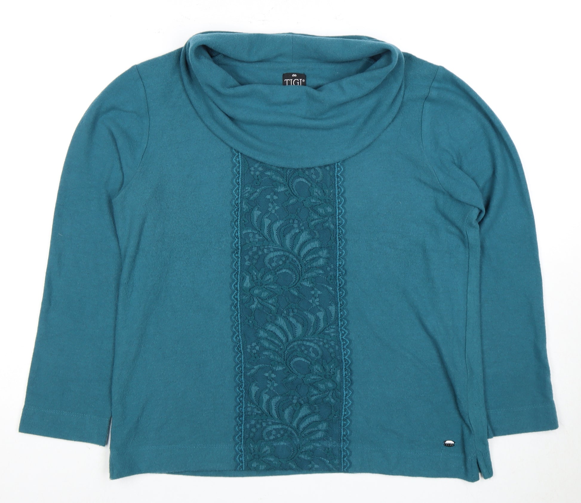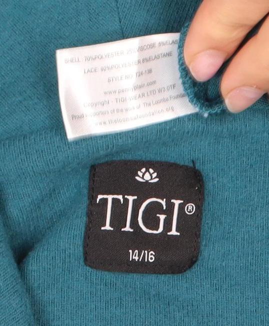 Step out in style with this elegant yet casual TIGI Women's Blouse, perfect for adding a touch of versatility to your wardrobe. Crafted from a soft jersey fabric, this blouse features a blend of 93% cotton and 7% elastane, ensuring a comfortable and stretchy fit that adapts to your figure effortlessly. The beautiful blue colour provides a bold statement while maintaining a chic and timeless appeal, making it an essential piece for the autumn season.The blouse boasts a flattering cowl neckline, adding a sophisticated flair that works well for both day and evening wear. Its classic 3/4 sleeves provide an elegant touch, making it ideal for pairing with your favourite jeans or a tailored skirt. The lace accents enhance the overall design, providing an additional layer of texture and interest. Designed for everyday wear, this piece is machine washable, making it easy to care for and maintain.Perfect for a casual day out or an informal gathering, this regular fit blouse offers comfort without compromising on style. Though it shows slight signs of wear, it remains in excellent condition, ensuring many more outings to come. Elevate your wardrobe with this versatile and stylish TIGI blouse today!