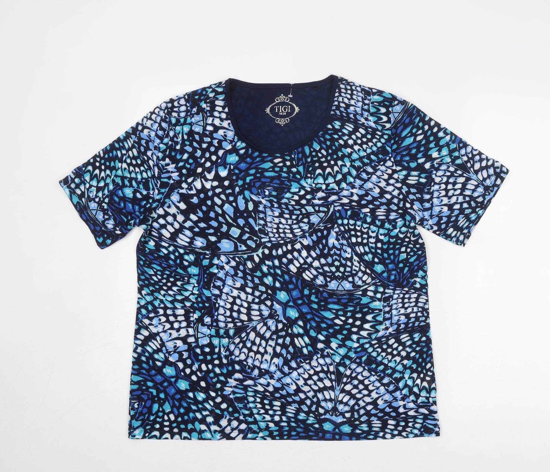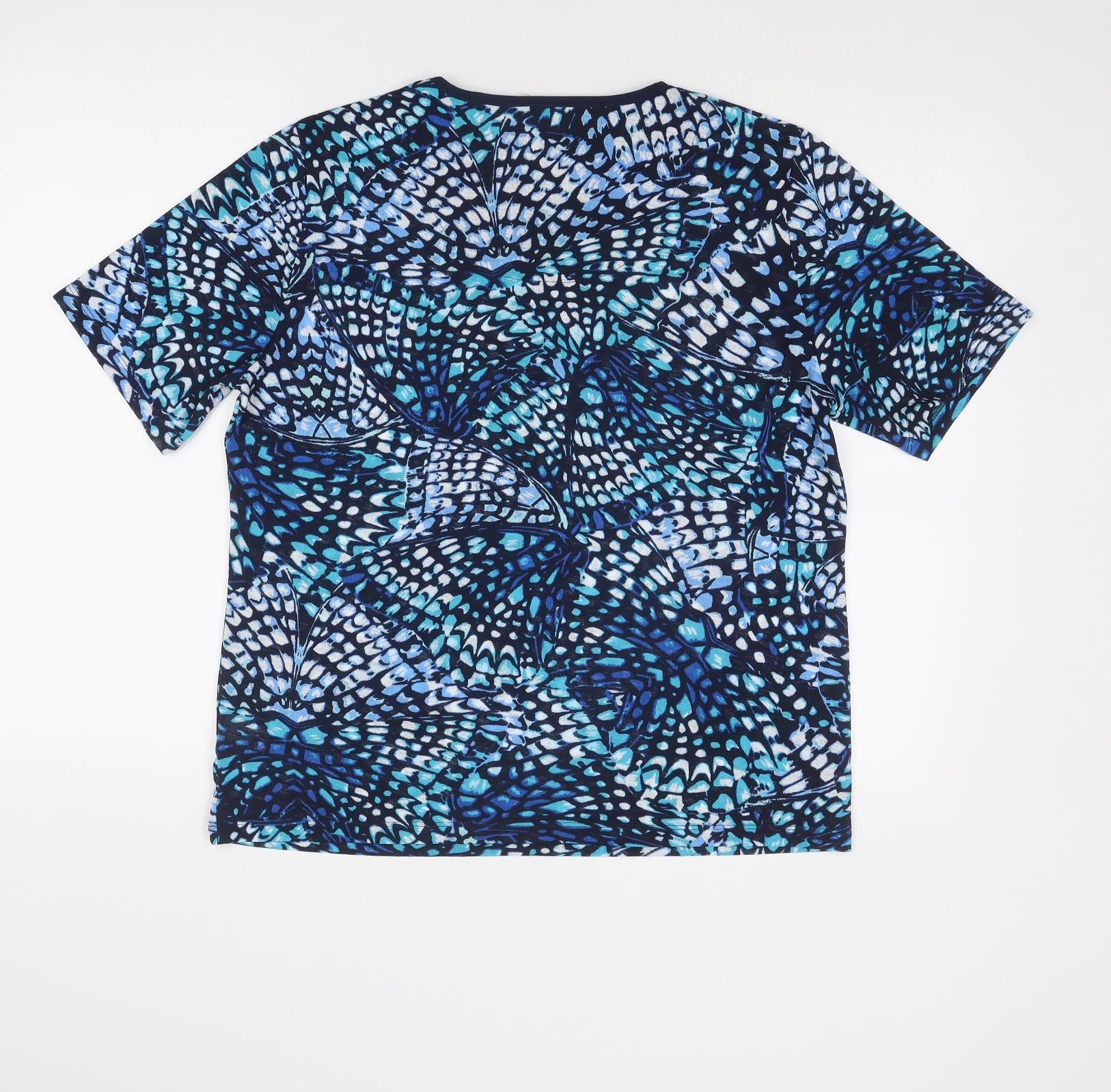 Womens Blue Geometric Polyester Basic T-Shirt Size 18 Round Neck