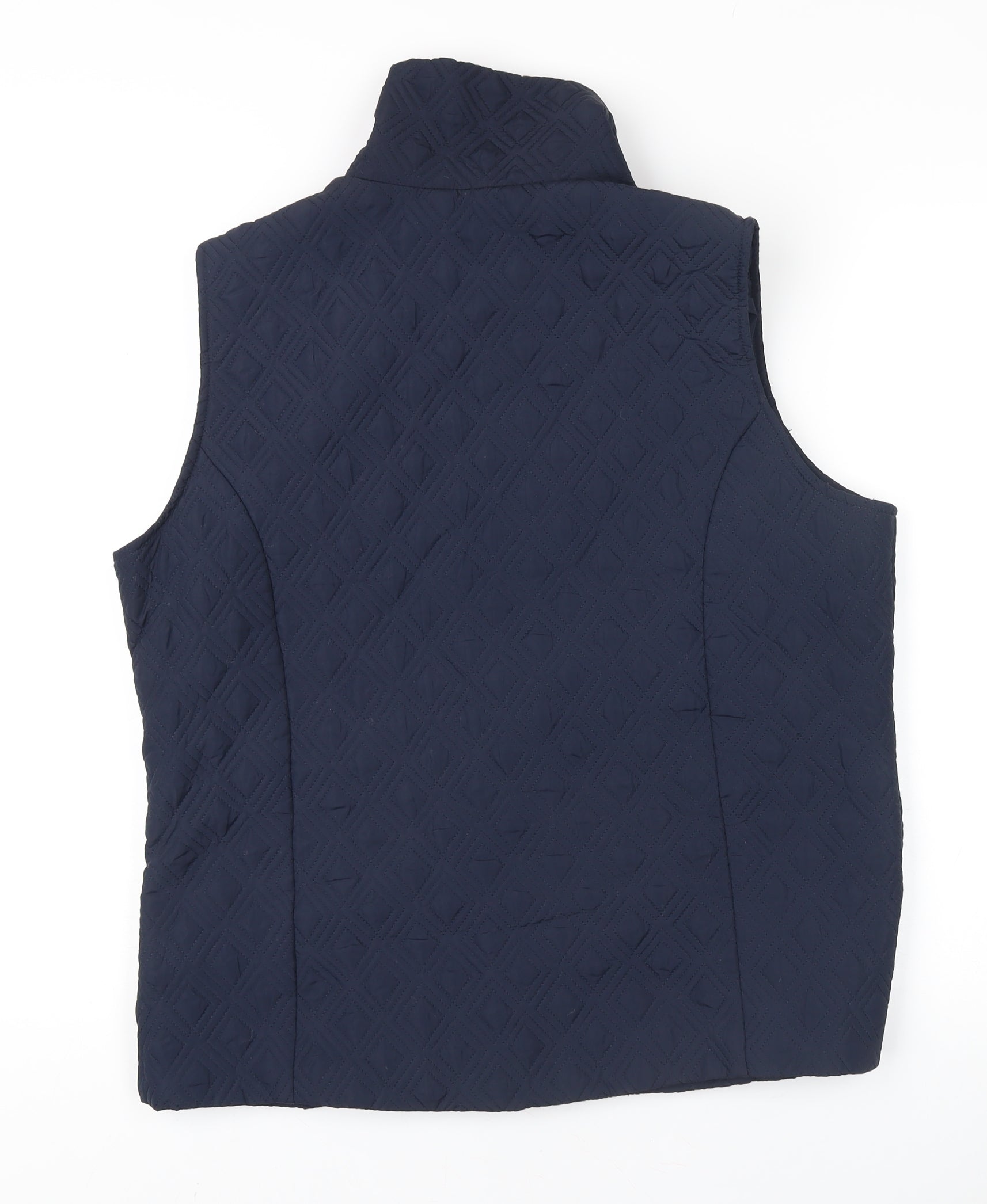 EWM Women Blue Floral Embroidered Zip Waistcoat Size 14