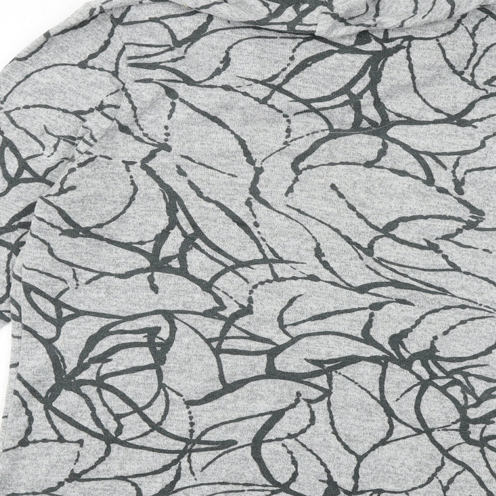 Womens Grey Geometric Polyester Basic Blouse Size 14 Roll Neck
