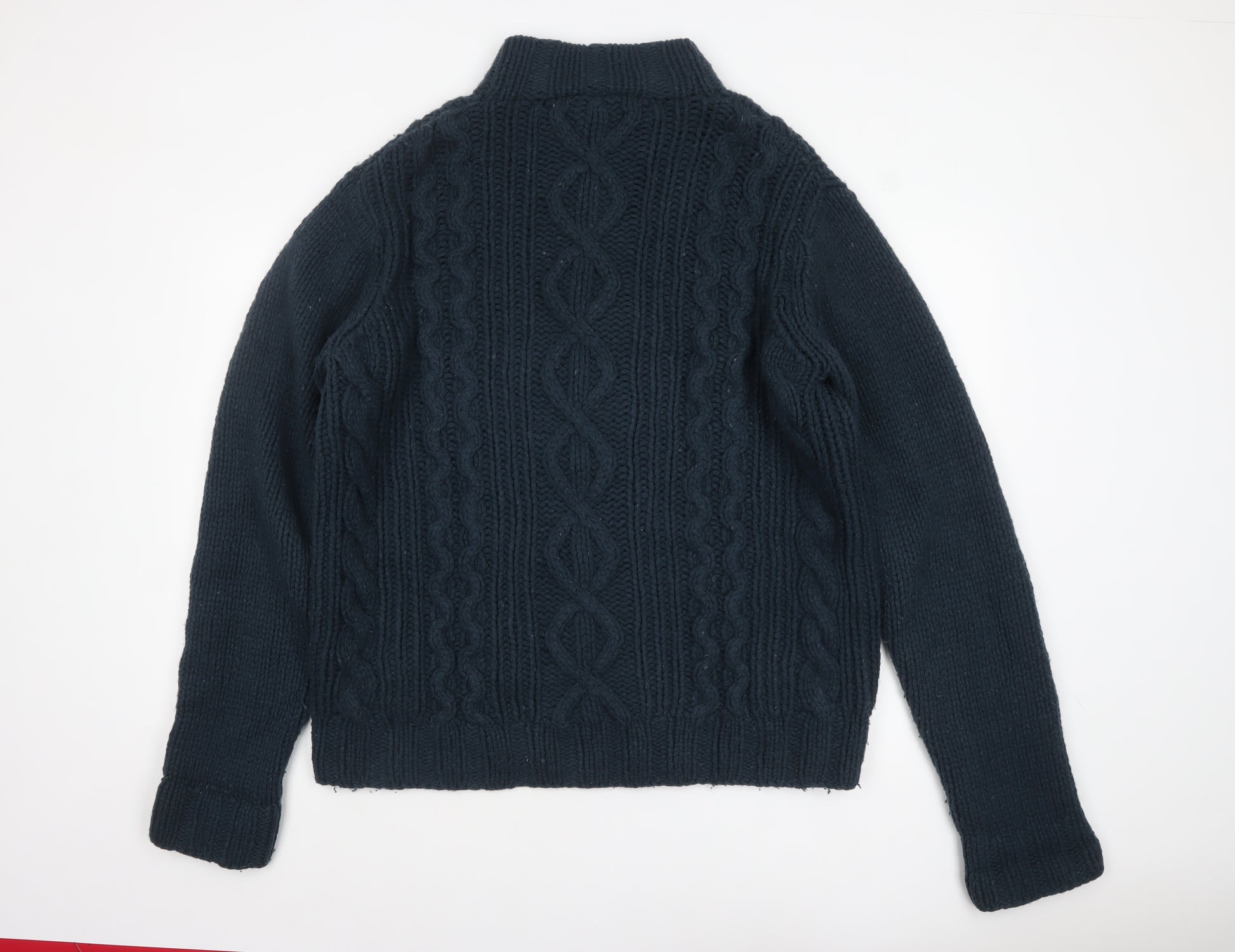 Men’s Blue Cable-Knit Wool 1/2 Zip Jumper XL
