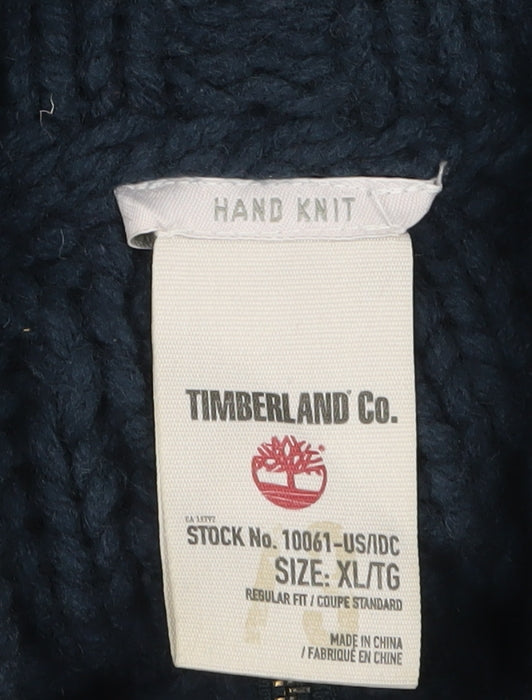 This Timberland men's blue cable-knit jumper combines warmth, style, and timeless quality for the modern man. Crafted from 100% wool, it offers exceptional insulation and softness, ideal for keeping comfortable through chilly autumn and winter days. The thick cable-knit texture gives this hand-knit piece a classic and rugged appeal, while the rich blue hue adds a versatile and contemporary edge. The half-zip high neckline provides both function and style — wear it zipped up for extra warmth or open for a laid-back look.Designed in a regular fit, this jumper ensures easy layering over shirts or under jackets without compromising on comfort. The long sleeves and ribbed hem and cuffs retain heat, creating a snug and secure feel. With Timberland's hallmark craftsmanship, the piece balances practical warmth with premium quality, making it perfect for outdoor adventures, travel, or cosy weekend wear. Whether paired with jeans and boots for an off-duty outfit or chinos for a relaxed smart-casual vibe, it’s a wardrobe essential for any season.Its hand-knit construction gives it a distinctive, artisanal character that stands out from mass-produced alternatives. The 100% wool composition also means it naturally regulates body temperature and wicks moisture, keeping you comfortable throughout the day. Despite its excellent pre-owned condition, there’s only minor evidence of light wear — reflecting careful previous use and long-lasting quality.A perfect choice for casual and versatile dressing, the Timberland 1/2 zip wool jumper embodies durability and timeless style. It’s particularly suitable for autumn and winter use and ideal for everyday wear or cold-weather travel. Add this premium Timberland knitwear piece to your wardrobe for a touch of classic craftsmanship blended with rugged outdoor charm — built to last and look great year after year.