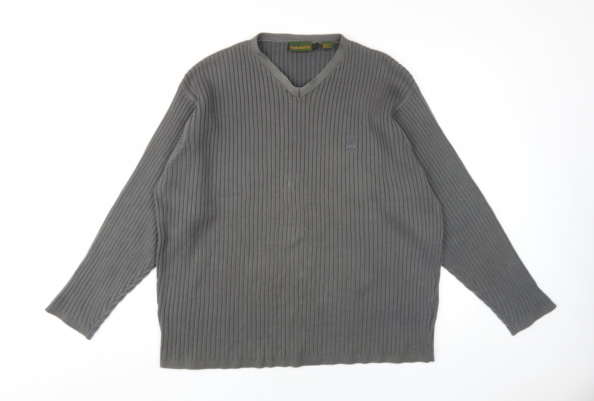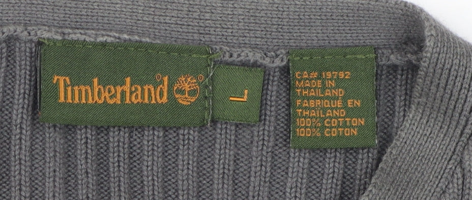 Upgrade your wardrobe with this classic Timberland Men's Grey V-Neck Knit Pullover in size L. Fashioned from 100% cotton, this refined pullover combines comfort with style, making it an ideal choice for various occasions. The subtle grey colour provides a versatile look, while the high-quality tight-knit fabric ensures durability and added warmth. This regular fit pullover features a timeless V-neckline, offering a modern twist to your everyday attire. Perfect for all seasons, pair it with jeans for a casual outing or with smart trousers for a more polished look. Machine washable for easy care, this pullover promises a blend of convenience and elegance. Although slightly worn, it remains in excellent condition with no visible damage, ready to enhance your fashion statement. Elevate your style with this essential piece from Timberland, designed to offer both comfort and sophistication.