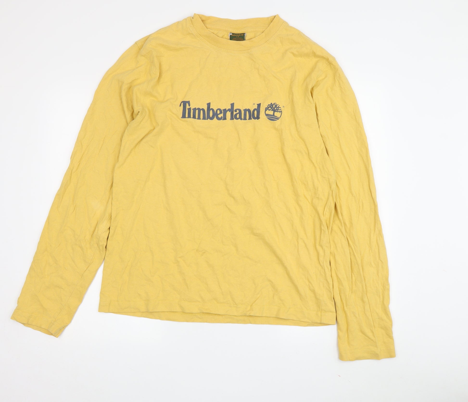 Step out in style with this iconic Timberland Men's Long Sleeve T-Shirt in a vibrant yellow hue. Crafted from 100% organic cotton, this comfortable and breathable jersey fabric top is perfect for outdoor adventures or casual outings. The bold Timberland logo is accented on the front, giving it a standout appeal. Designed with a crew neck and regular fit, this T-shirt is machine washable for easy care. Suitable for all seasons, it provides both comfort and style. Available in size Large, it’s an excellent choice for those who appreciate quality and timeless design in their wardrobe. Pair it with jeans or shorts for an effortless, fashionable look.