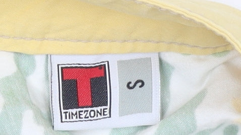 Bring a fresh burst of summer energy to your wardrobe with this vibrant Timezone women’s skirt. Designed in a flattering short wrap style, it captures everything you love about warm-weather dressing — lightweight comfort, lively colour and everyday versatility. The skirt features a beautiful tropical-inspired floral pattern in cheerful shades of yellow, green, and orange, giving it an eye-catching yet easy-to-wear appeal. The lace-up front detail adds a relaxed and playful touch, perfect for casual days in or out of the sun.Crafted from a high-quality blend of 70% cotton and 30% polyamide, this skirt feels soft against the skin while offering durability and breathability. The cotton provides comfort, while the polyamide gives shape retention — making it ideal for summers, beach holidays, or laid-back daytime wear. The fabric has a gently structured feel, cut to a short length that allows for ease of movement and a flattering fit on the hips.The feminine cut and mid-rise waist create a comfortable silhouette that suits different body types, while the tropical floral print adds a fun and confident vibe. Pair it effortlessly with a white tank top, sandals, and light accessories for a breezy casual look, or layer it over your swimwear for a stylish cover-up at the beach.Condition is good with a small front mark on the fabric, consistent with light prior use. It remains in great wearable shape and offers excellent value for a quality, branded, and stylish everyday piece. Ideal for women who appreciate comfort and vibrant flair in their outfits, this skirt’s design and colour palette make it a reliable wardrobe favourite for casual summer days. Whether for a garden party, holiday getaway, or weekend brunch, this Timezone skirt ensures you feel and look effortlessly cool all season long.