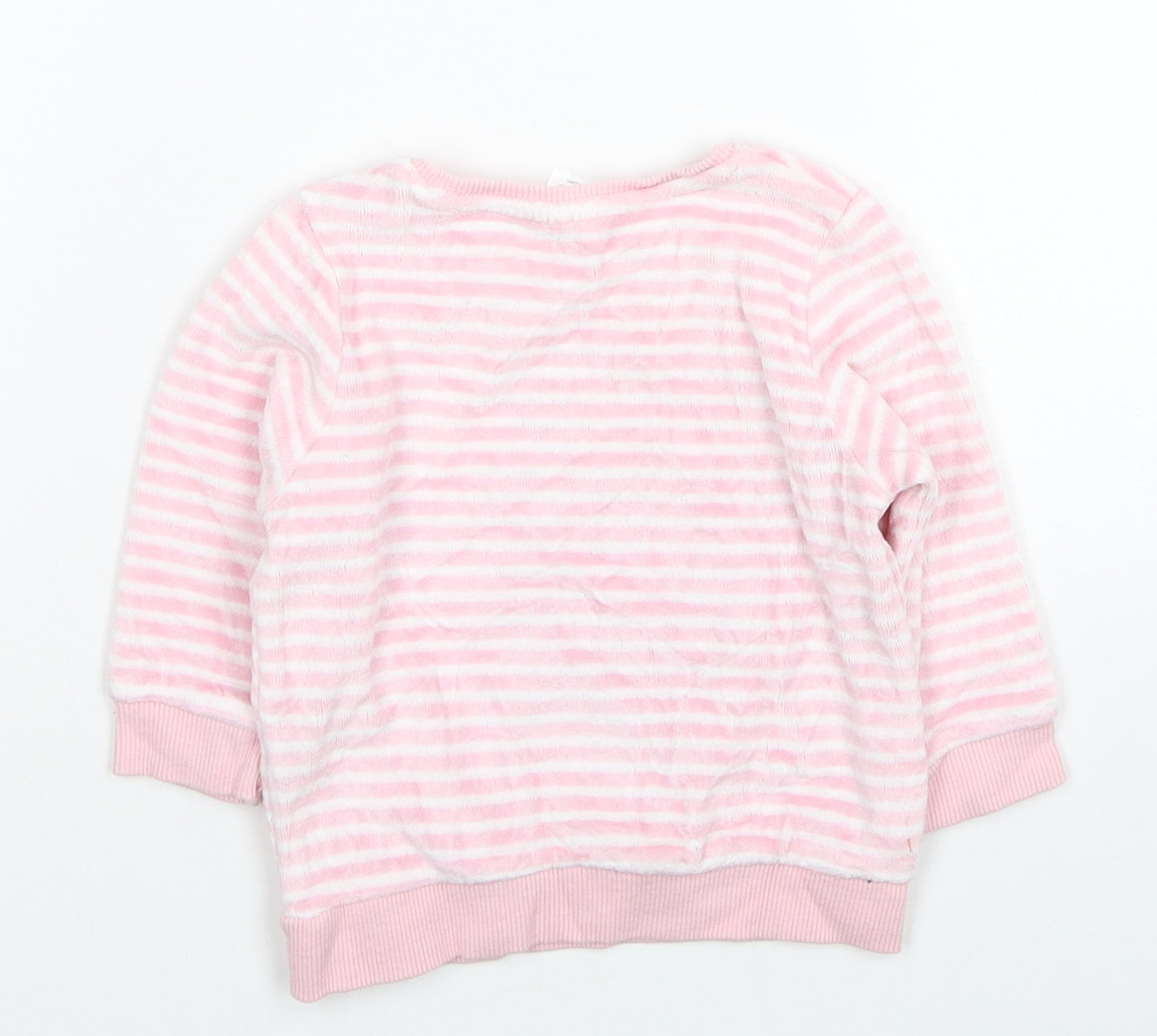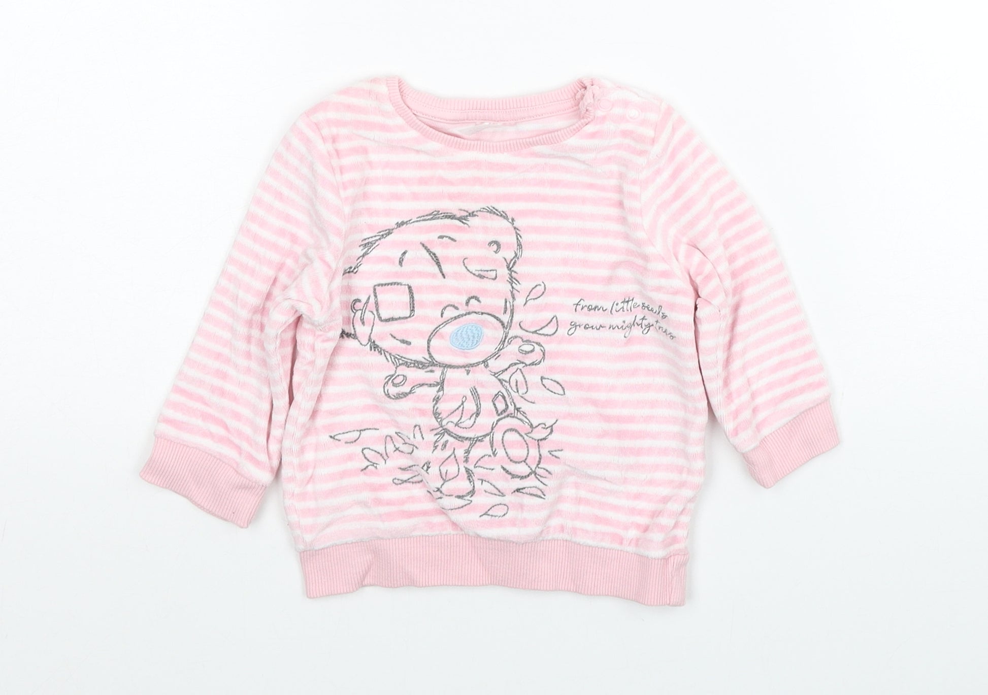 Girls Pink Striped Cotton Pullover Jumper Size 0-3 Months Button - Teddy Bear