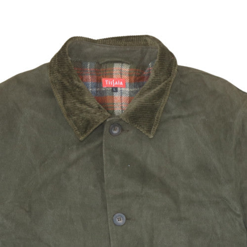 Tissaia Mens Green Cotton Lined Overcoat L Regular Button Casual Jacket