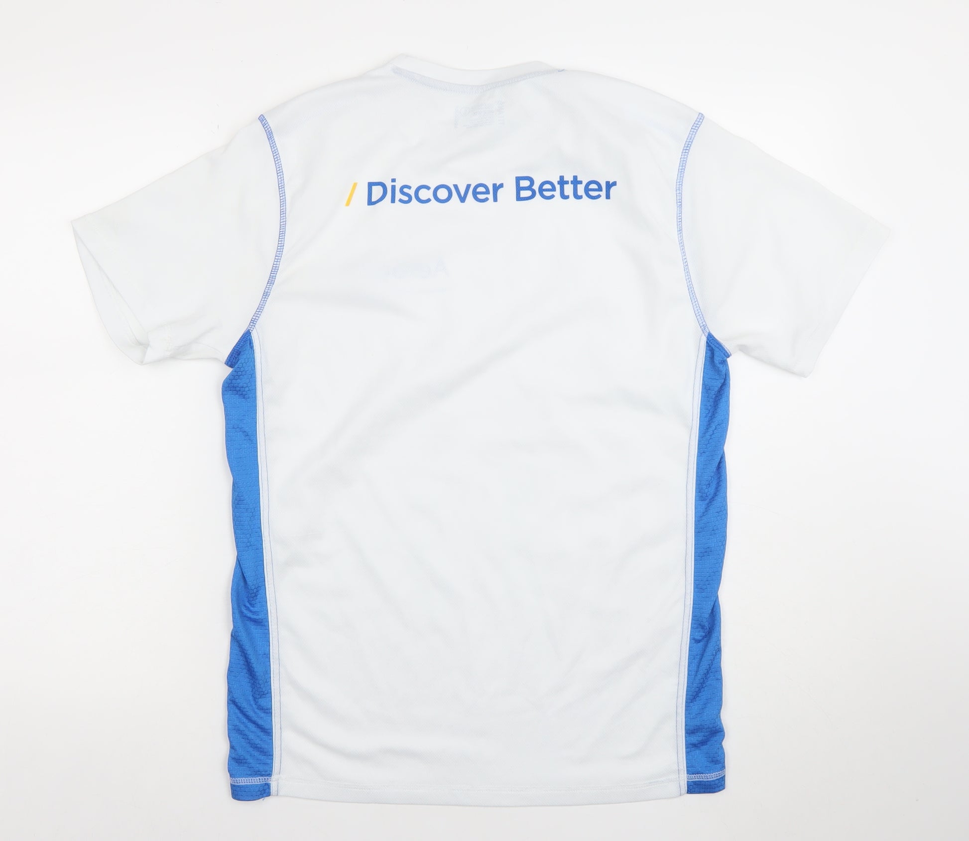 Men's White Blue Polyester Crew Neck Running T-Shirt L