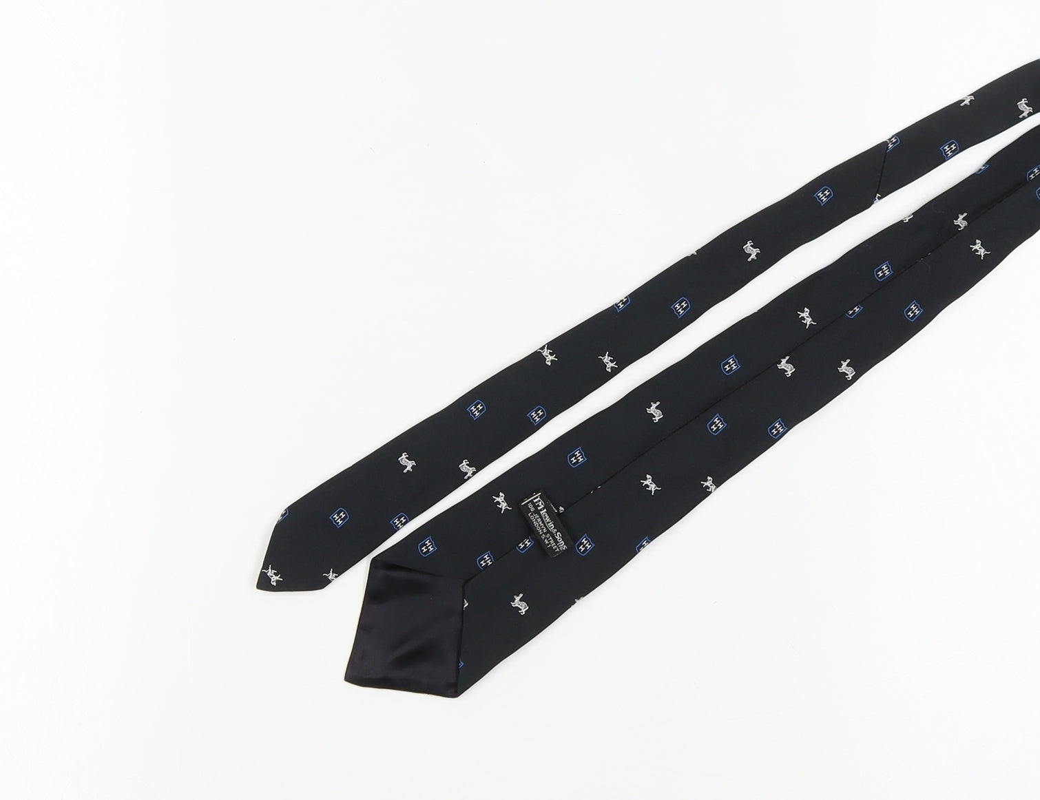 Elevate your formal wear with this classic black silk tie from TM Lewin & Sons. Ideal for those who appreciate sophisticated style, this slim tie features geometric patterns with elegant embroidered logos, adding just the right touch of detail. Perfect for professional and formal occasions, its quality silk fabric ensures a smooth and luxurious feel. TM Lewin is renowned for their timeless designs and this tie is no exception, promising durability and style in equal measure. The rich black colour elegantly complements any suit, making it a versatile addition to your wardrobe. Despite being gently used, it remains in excellent condition with no visible signs of wear, almost as good as new. Whether for a wedding, business meeting, or a special event, this tie perfectly encapsulates modern elegance. Snap up this excellent condition piece and bring a touch of refined class to your collection today!