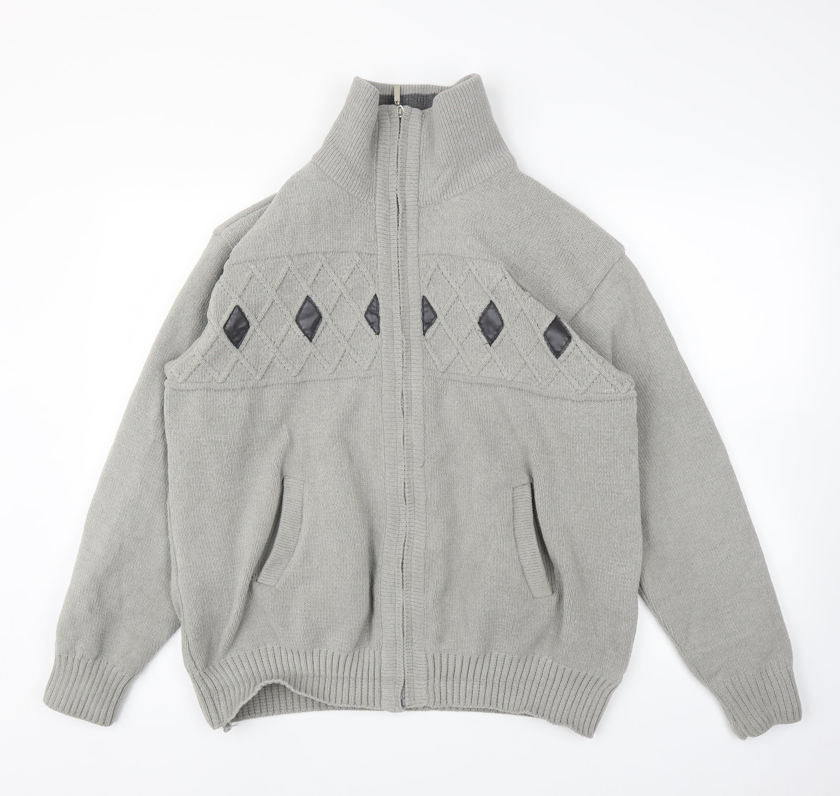 Mens Grey Argyle/Diamond Full Zip Jumper Size L