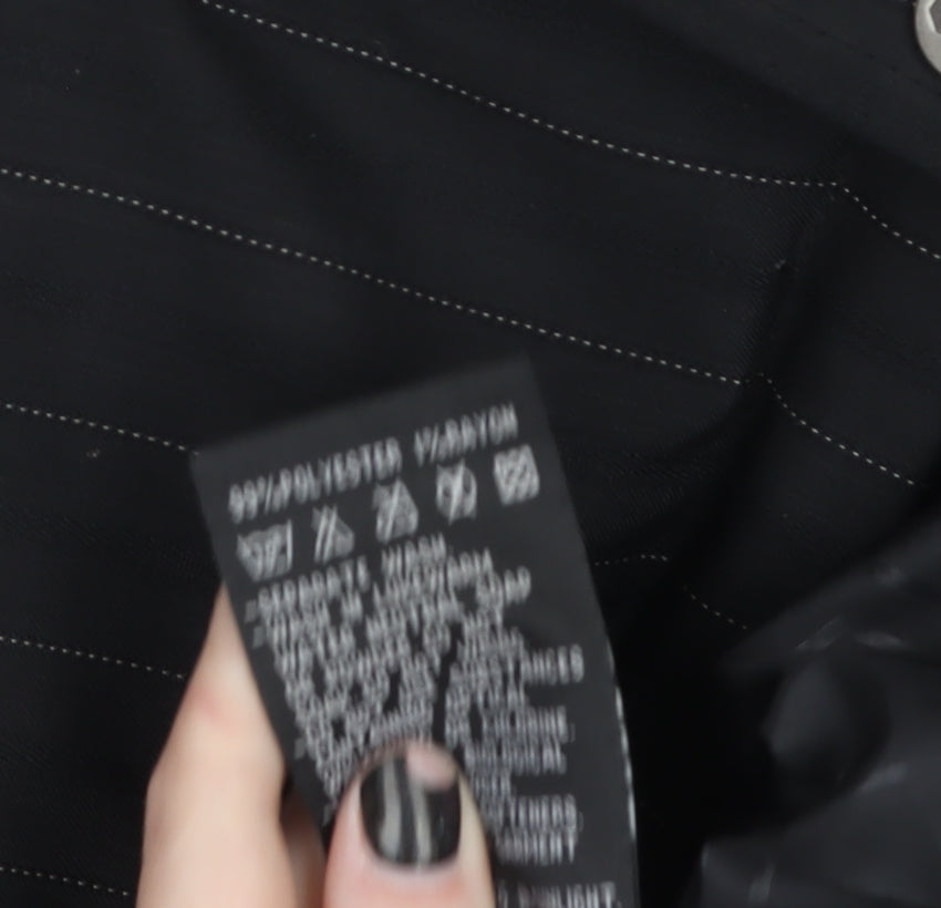 Men's Black Pinstripe Mid-Length Lined Jacket Size M