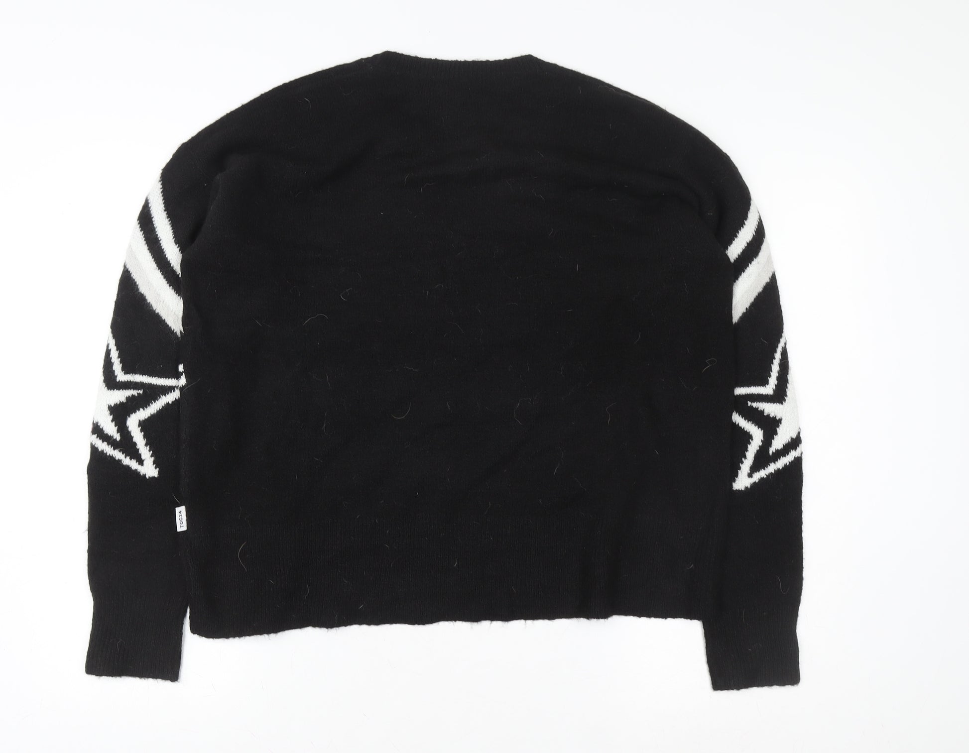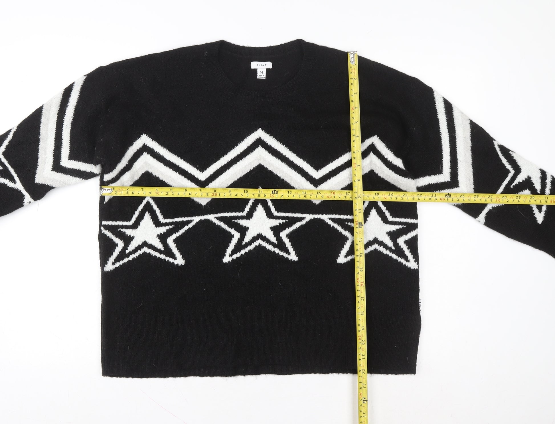 Women's Black Star Pattern Crew Neck Jumper Size 14