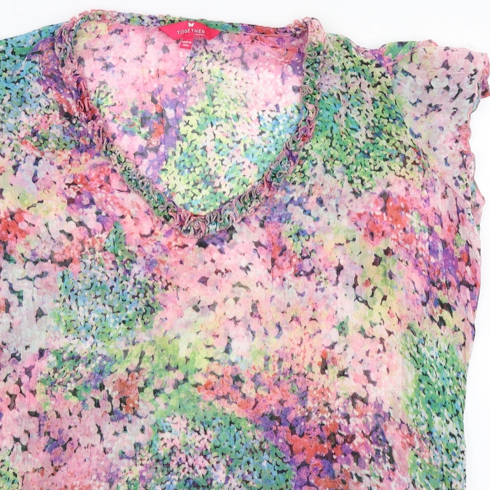 Womens Multicoloured Floral Polyester Basic Blouse Size 14 V-Neck