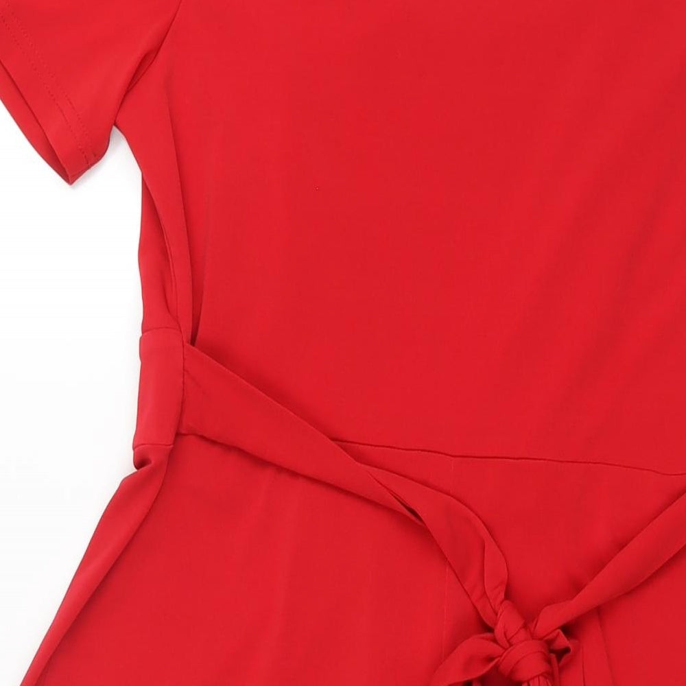 Womens Red Polyester A-Line Size 14 Round Neck Pullover - Bow Detail Belted