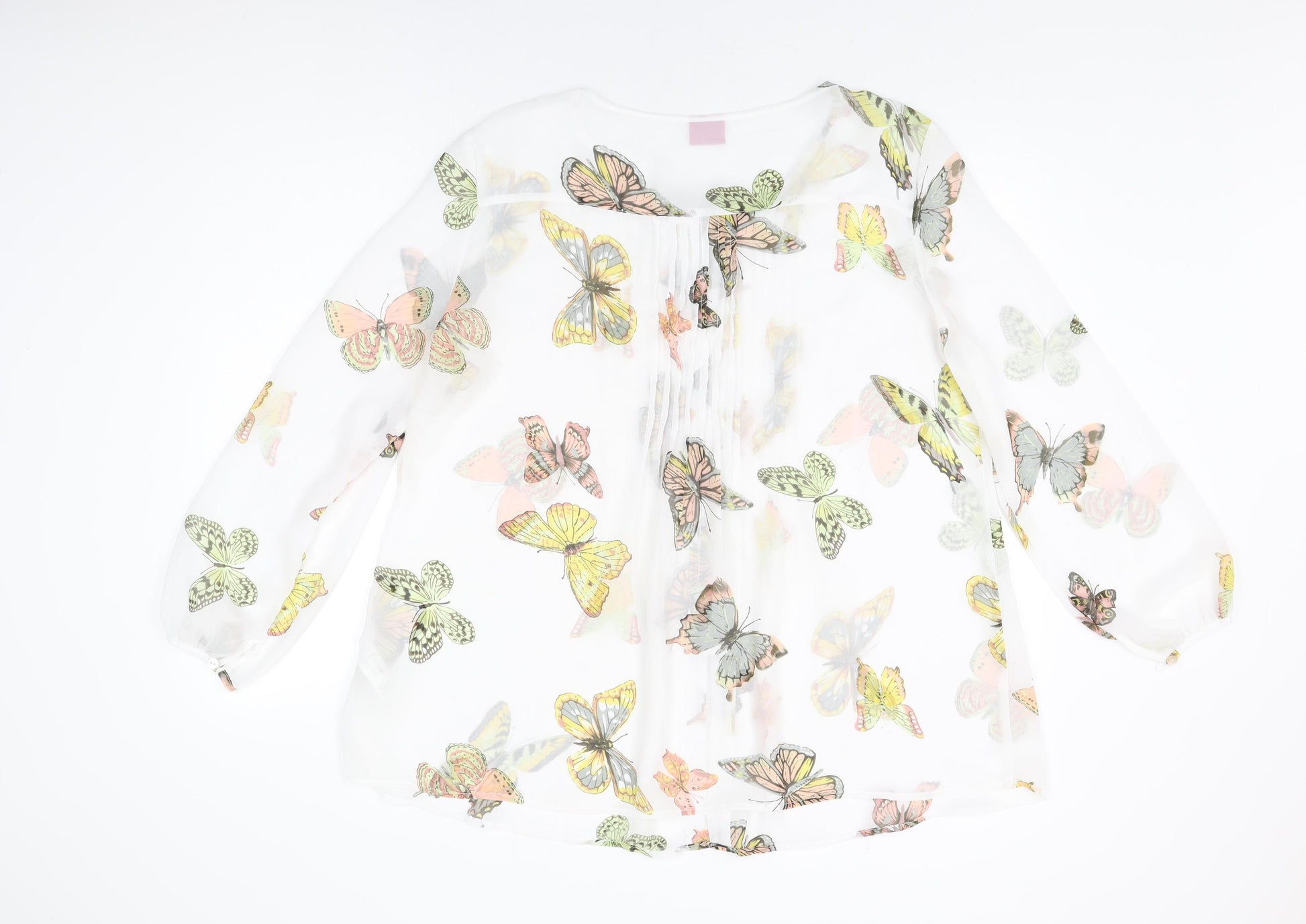 Womens White Geometric Polyester Basic Button-Up Size 18 Round Neck - Butterfly Print