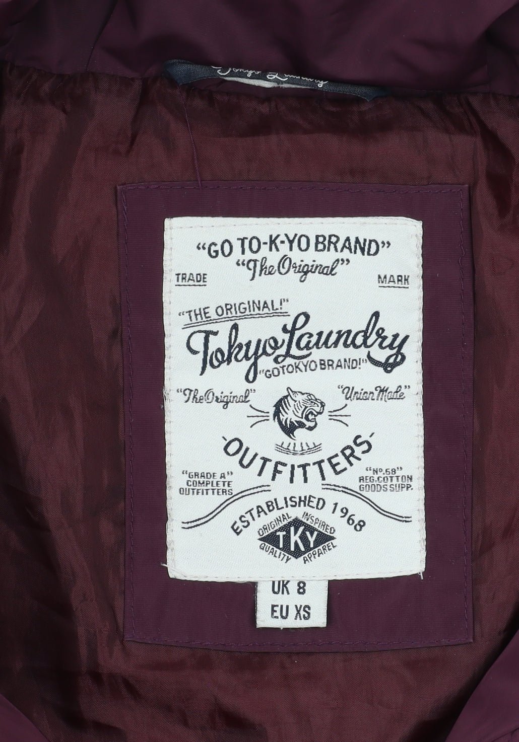 Elevate your winter wardrobe with this stylish Tokyo Laundry women's puffer jacket. Featuring a deep purple hue, this casual staple is perfect for the cooler months, offering cosy comfort with its polyester insulation. Designed for a regular fit, it flaunts a zip closure, ensuring a snug and secure fit. The hooded design and zipped pockets add functionality, keeping you warm and your essentials safe throughout your autumn and winter adventures. With its machine washable fabric, maintenance is a breeze, making it a practical choice for everyday wear. Embrace a chic, effortless style with this must-have puffer jacket.