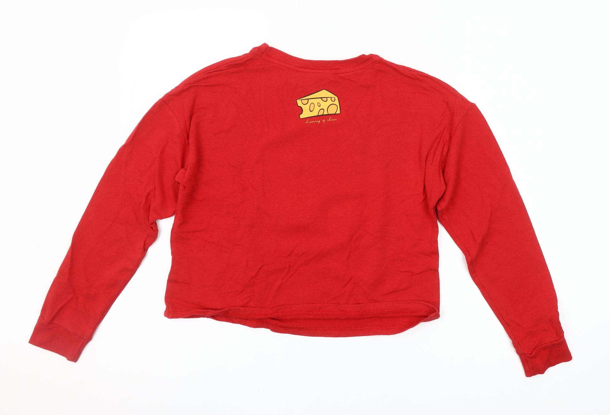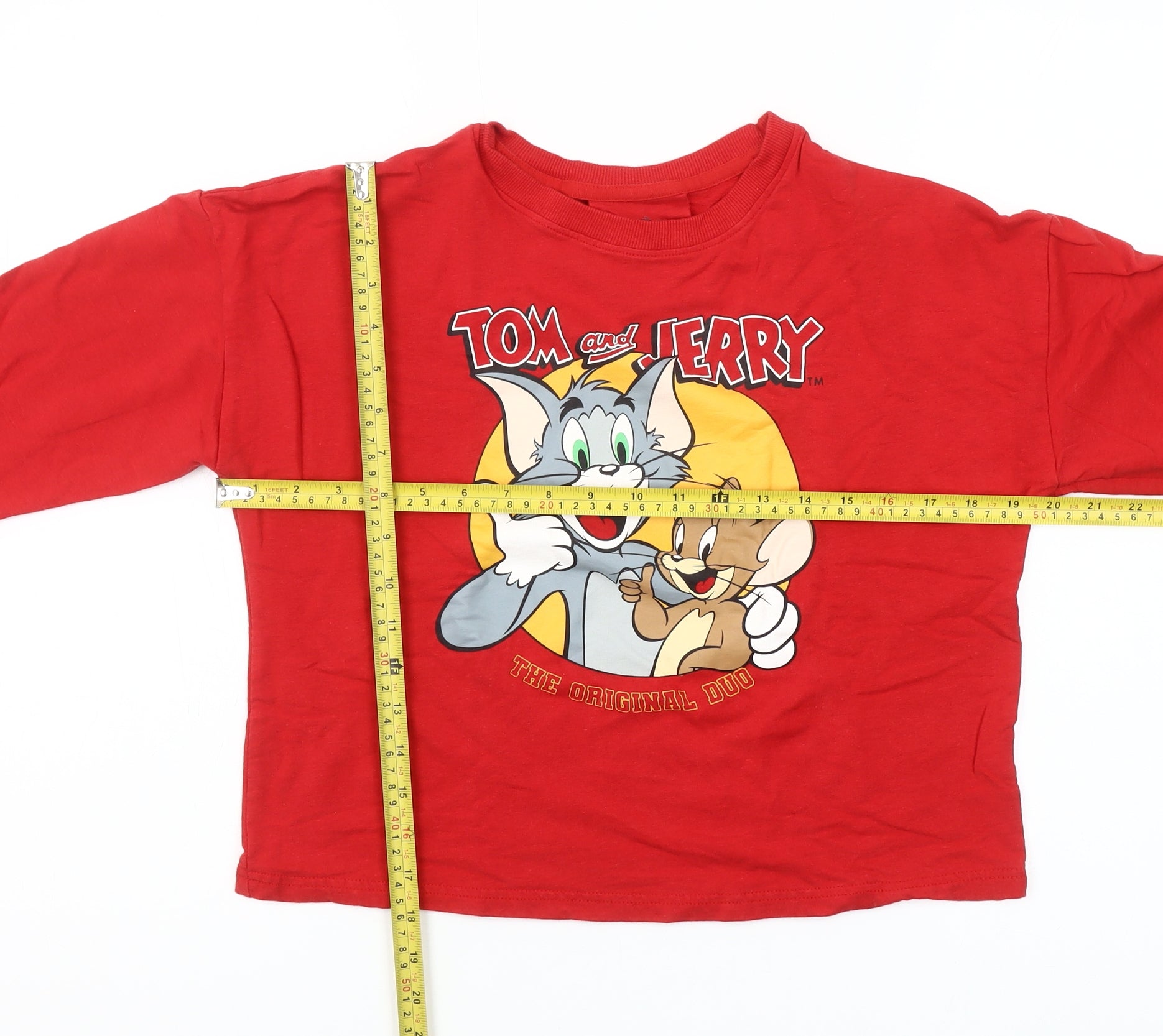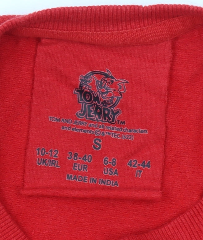 Add a playful touch to your nightwear collection with this vibrant Tom and Jerry women's nightshirt. Designed in a bold red shade, this comfy T-shirt style top features the classic cartoon duo, making it a fun and nostalgic choice for bedtime or lounging. Crafted from 100% cotton, the soft jersey fabric feels gentle against the skin while being lightweight and breathable, ensuring all-night comfort. The long sleeve design is ideal for cooler evenings, making it perfect for autumn, winter, or spring wear. With its relaxed fit and crew neckline, this nightshirt provides ease of movement and a casual, laidback style. The detailed Tom and Jerry print on the front adds a nostalgic retro feel, appealing to both fans of the classic cartoon and those who enjoy character clothing with personality. The logo accent enhances its authentic cartoon charm. Sized to fit UK 10-12, this is a regular-sized piece that caters to women looking for stylish and comfortable nightwear with a touch of fun. The machine washable cotton fabric makes this nightshirt easy to care for, so it can remain a wardrobe favourite for years to come. Finished in a vibrant graphic print design, this nightshirt is not only practical but also a cheerful addition to any sleepwear rotation. In excellent pre-loved condition, this piece shows only light signs of wear with no flaws, ready for its next home. Whether you are seeking a playful piece of loungewear, a cosy long-sleeve nightshirt, or a thoughtful gift for a Tom and Jerry fan, this is an appealing choice. Offering classic comfort with a nostalgic edge, this nightshirt balances style and ease perfectly for rest and relaxation.