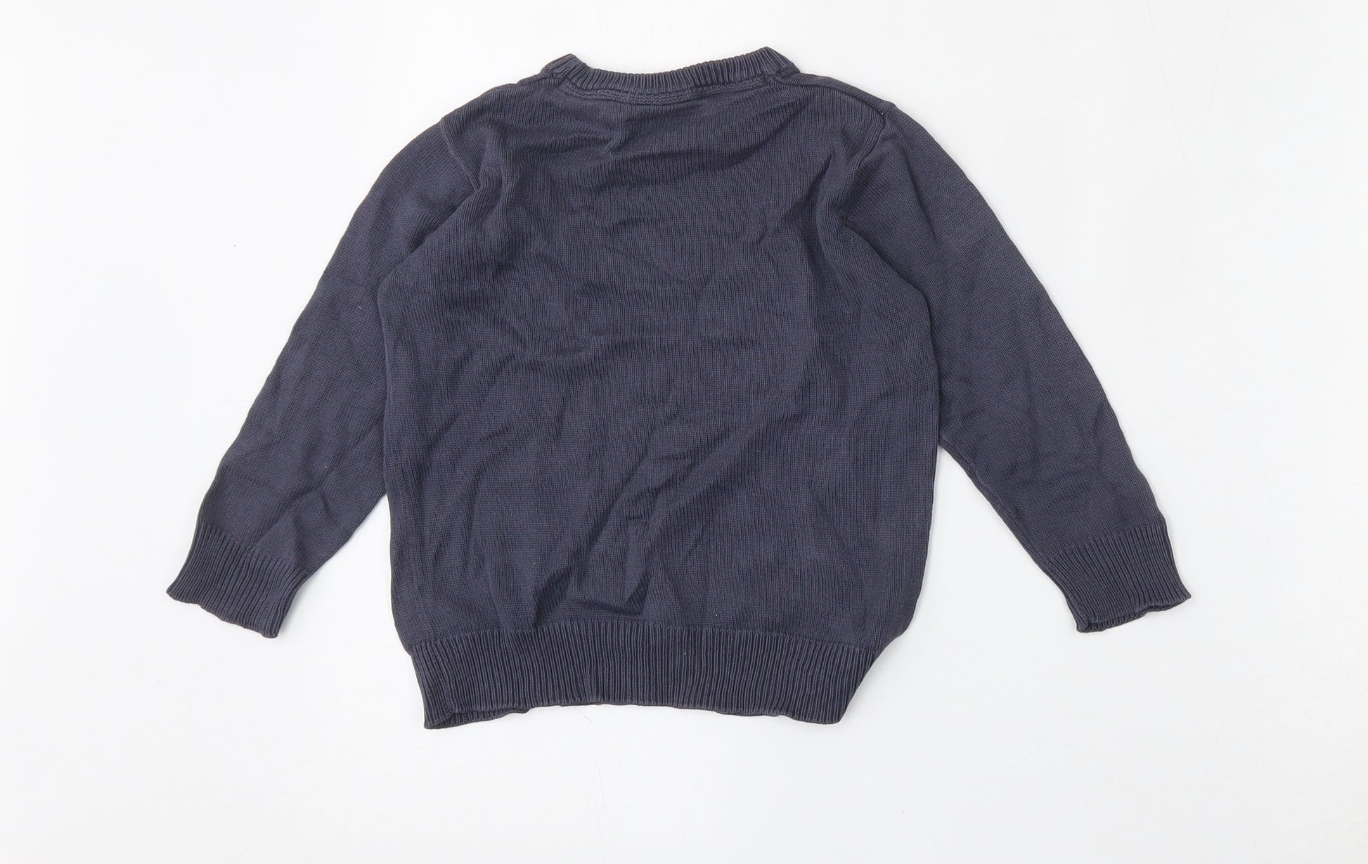Boys Blue Round Neck Cotton Pullover Jumper Size 3-4 Years