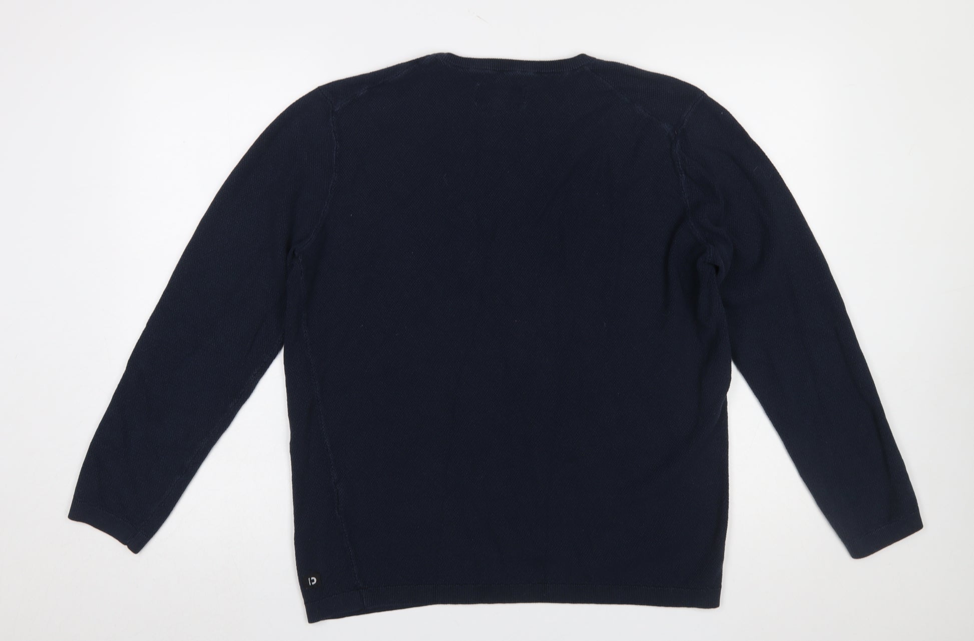 GANT Men Blue Cotton Crew Neck Jumper XL Classic Knit