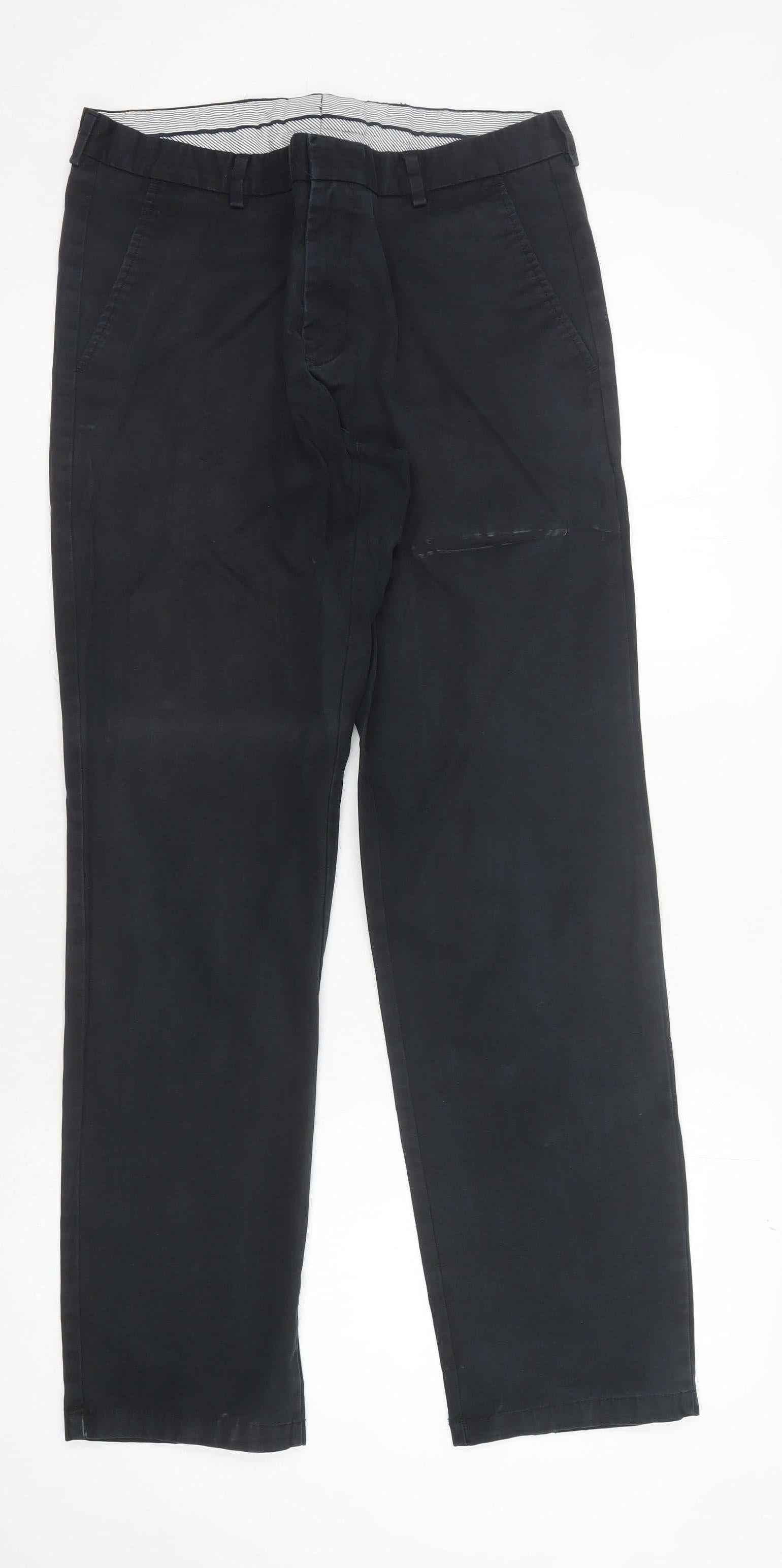 Embrace classic style with these Tommy Hilfiger men's trousers, perfect for any wardrobe. Tailored for a comfortable fit, these trousers come in a versatile black, ideal for both casual and formal settings. The regular size 33 waist is complemented by a 32-inch inside leg, ensuring a snug fit for most builds. Made from high-quality cotton with a hint of elastane, these trousers offer durability and slight stretch for added comfort. While there are mild wear marks, they remain in excellent condition, promising long-lasting style. The sleek design makes them suitable for various occasions, whether business meetings or social events. Upgrade your outfit with these timeless trousers from a well-respected brand and exude sophistication and confidence.