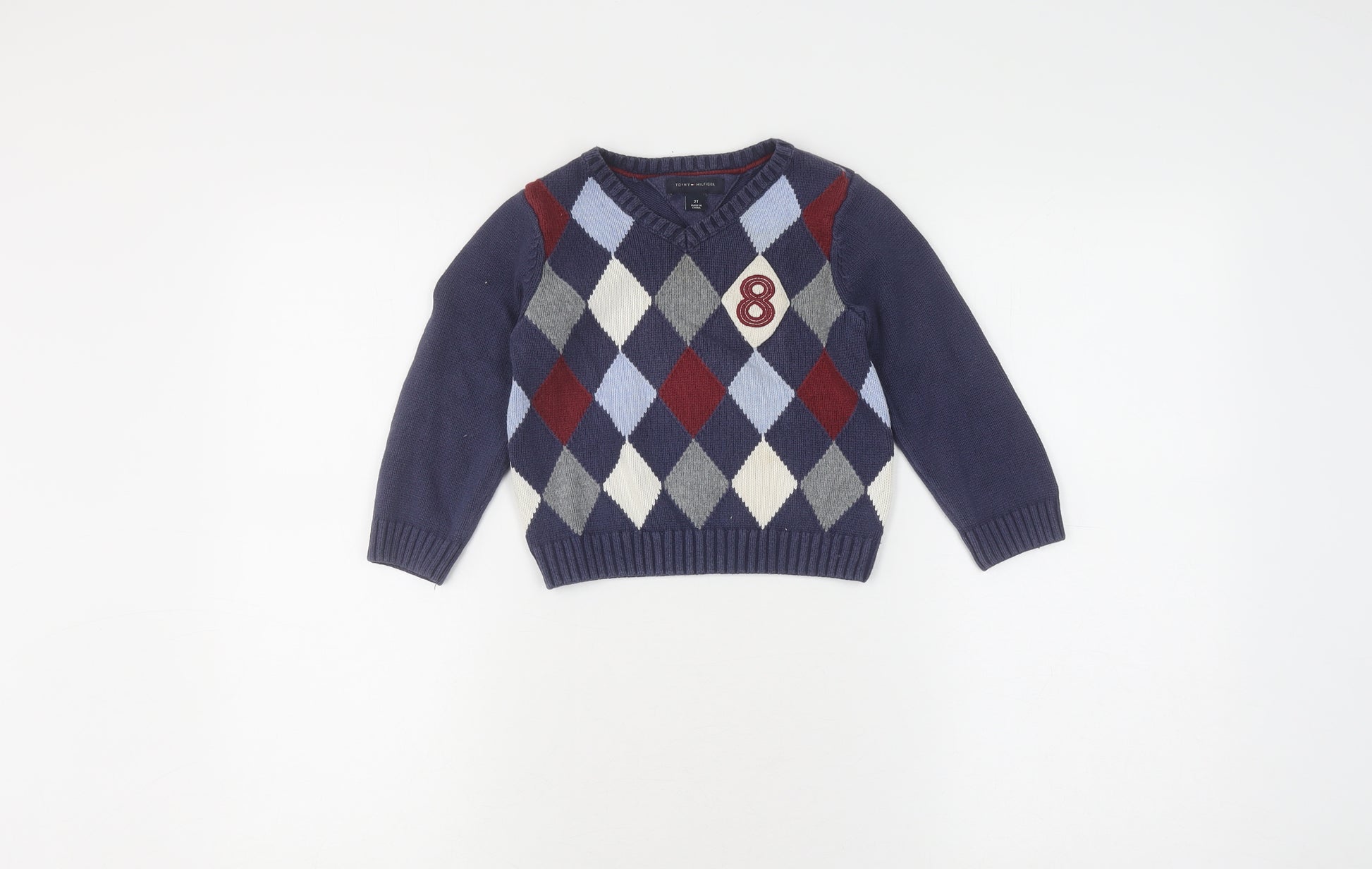 TU Boys Blue Christmas Jumper, Size 2 Years, Graphic Pullover