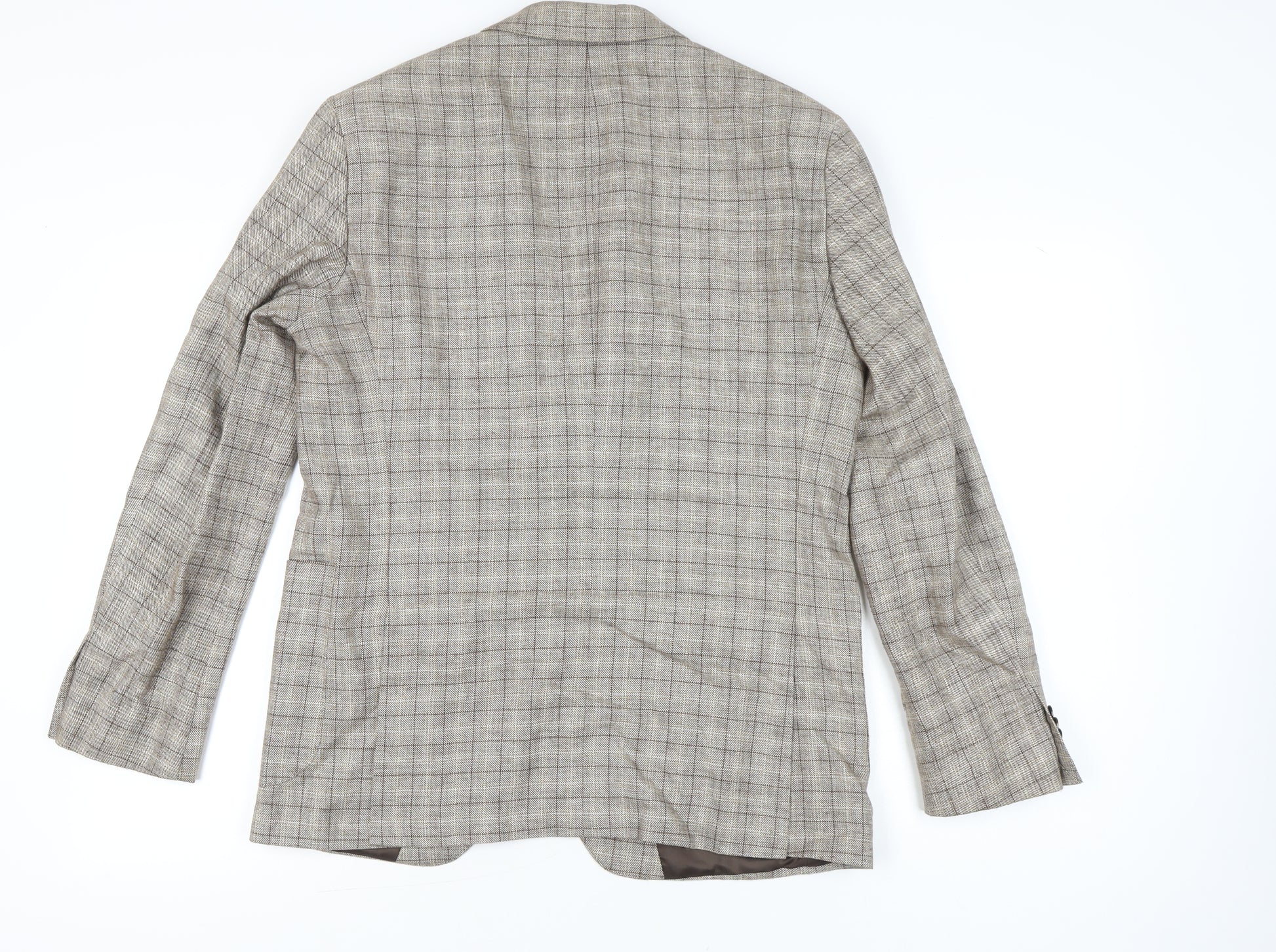 Men Beige Check Blazer Jacket Size 52 Regular Fit