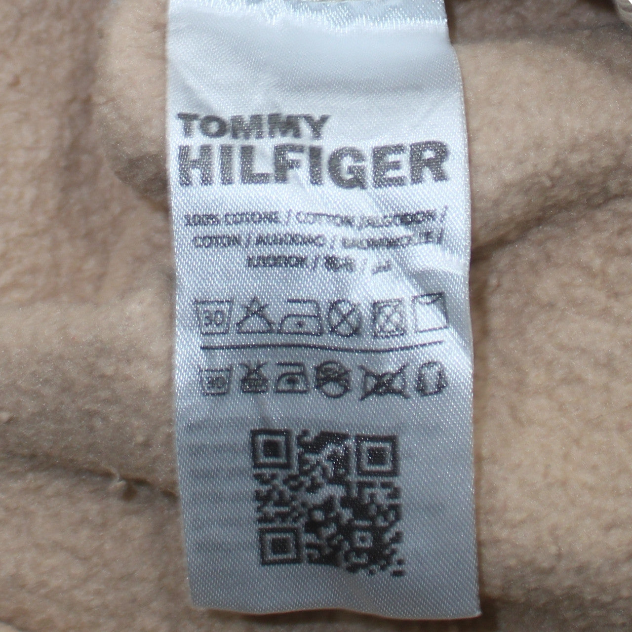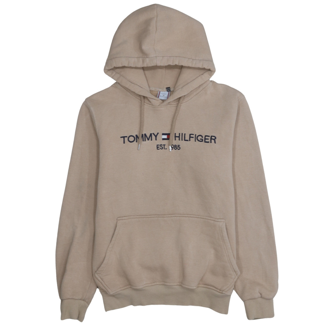 This Tommy Hilfiger men’s beige pullover hoodie offers timeless style, comfort, and signature branding perfect for everyday wear. Crafted from a soft and breathable cotton blend fabric with a touch of elastane, it provides a relaxed and comfortable fit ideal for casual use in cooler seasons. The fleece fabric interior adds warmth and softness against the skin, making it perfect for layering during autumn, spring, and winter. Designed in a versatile neutral beige colour, it features an embroidered Tommy Hilfiger logo and 'EST. 1985' detail on the front, showcasing classic collegiate appeal. The pullover style includes a hood with adjustable drawstrings and a spacious front kangaroo pocket for practicality. The ribbed cuffs and hem ensure an excellent fit while maintaining shape and structure. The lightweight design is suitable for all-season wear whether for walking, gym training, or simply lounging at home. This hoodie maintains excellent pre-owned condition with only light signs of wear and no faults, ensuring it looks fantastic and has plenty of life left. Machine washable for easy care, it’s a high-quality wardrobe staple that combines function and style effortlessly. Ideal for those who appreciate subtle branding and clean design from a trusted fashion label, this Tommy Hilfiger hoodie pairs perfectly with jeans, joggers, or chinos for a relaxed yet refined look. A must-have for men looking to add a touch of heritage-inspired style to their casual rotation.