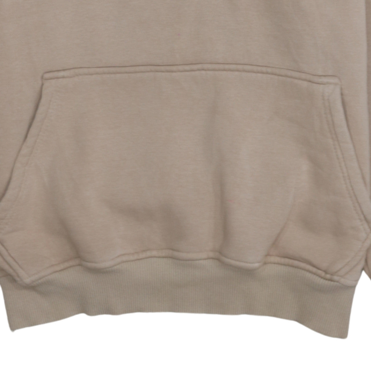 Men Beige Small Pullover Hoodie Embroidered Logo
