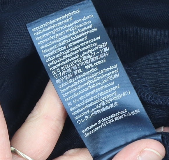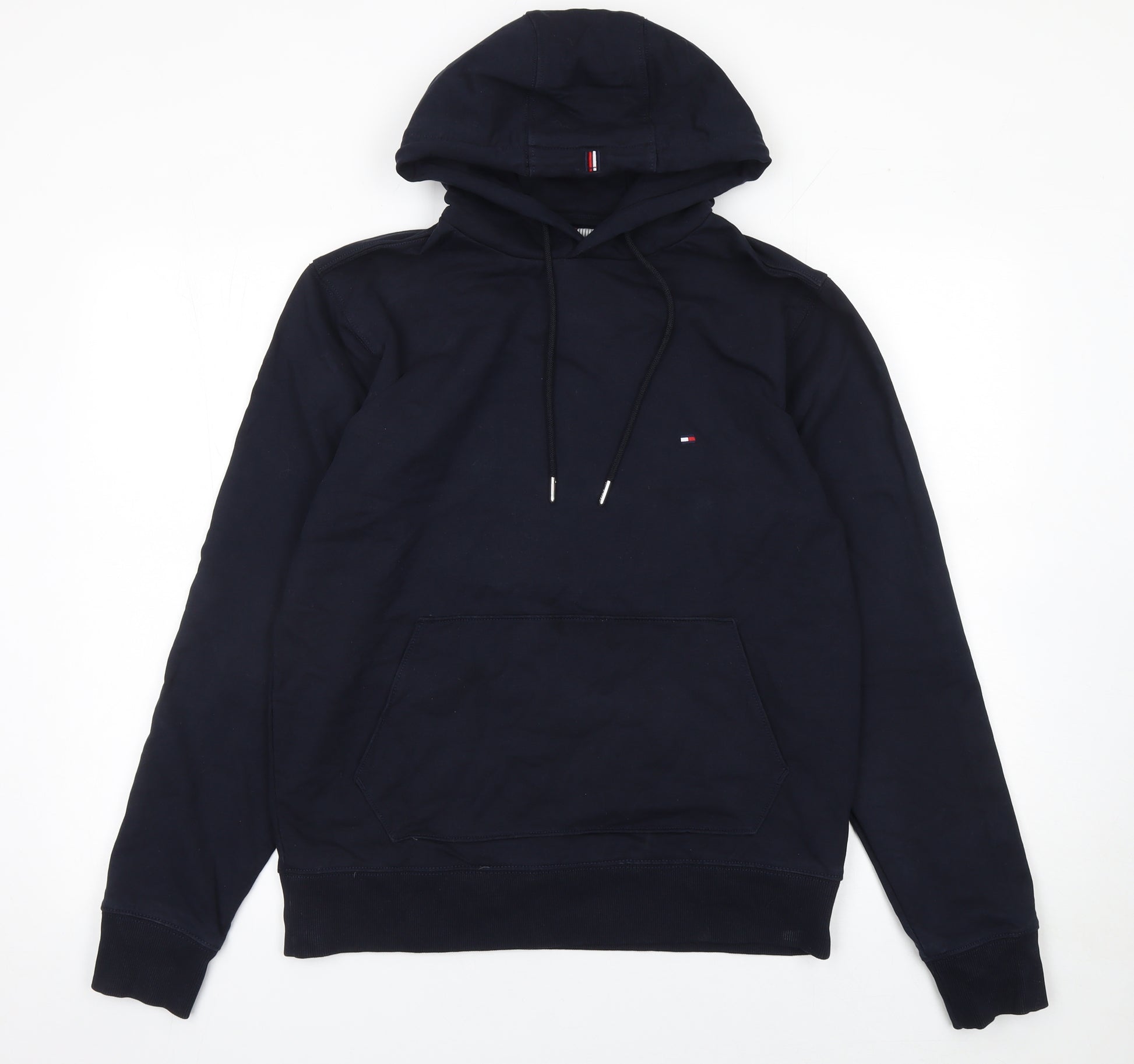 Upgrade your casual wardrobe with this Tommy Hilfiger men’s pullover hoodie, a timeless piece that embodies both comfort and style. Crafted from a soft and durable blend of 95% cotton and 5% elastane, this hoodie ensures a comfortable fit with just the right amount of stretch, making it ideal for everyday wear. The deep blue colour provides a classic, versatile look that pairs effortlessly with jeans or joggers, while the iconic Tommy Hilfiger logo embroidered subtly on the chest adds a touch of premium style. Designed for all-season wear, this hoodie features a drawstring hood for adjustable comfort and a large kangaroo pocket for convenient storage or a cosy spot to keep your hands warm. Ribbed cuffs and hem reinforce its shape and add durability, allowing it to maintain its sleek, relaxed silhouette over time. The pullover style and crew neckline offer easy, fuss-free dressing, while the regular fit ensures comfort without compromising on modern appeal. Perfect for casual outings, gym sessions, or lounging at home, this hoodie blends practicality with effortless fashion. Whether layered under a jacket during cooler months or worn solo on crisp evenings, it delivers reliable warmth and breathability thanks to its high-quality cotton fabric. In very good pre-owned condition, it shows only minor signs of wear with slight fading and lint that do not detract from its overall appearance or comfort. Machine washable for easy care, it’s a smart addition to any modern man’s wardrobe. Ideal for everyday wear, sports, or relaxed weekends, this Tommy Hilfiger hoodie embodies understated style and superior craftsmanship – a wardrobe staple that will never go out of fashion. Add it to your collection for a dependable piece that balances comfort and designer appeal perfectly.