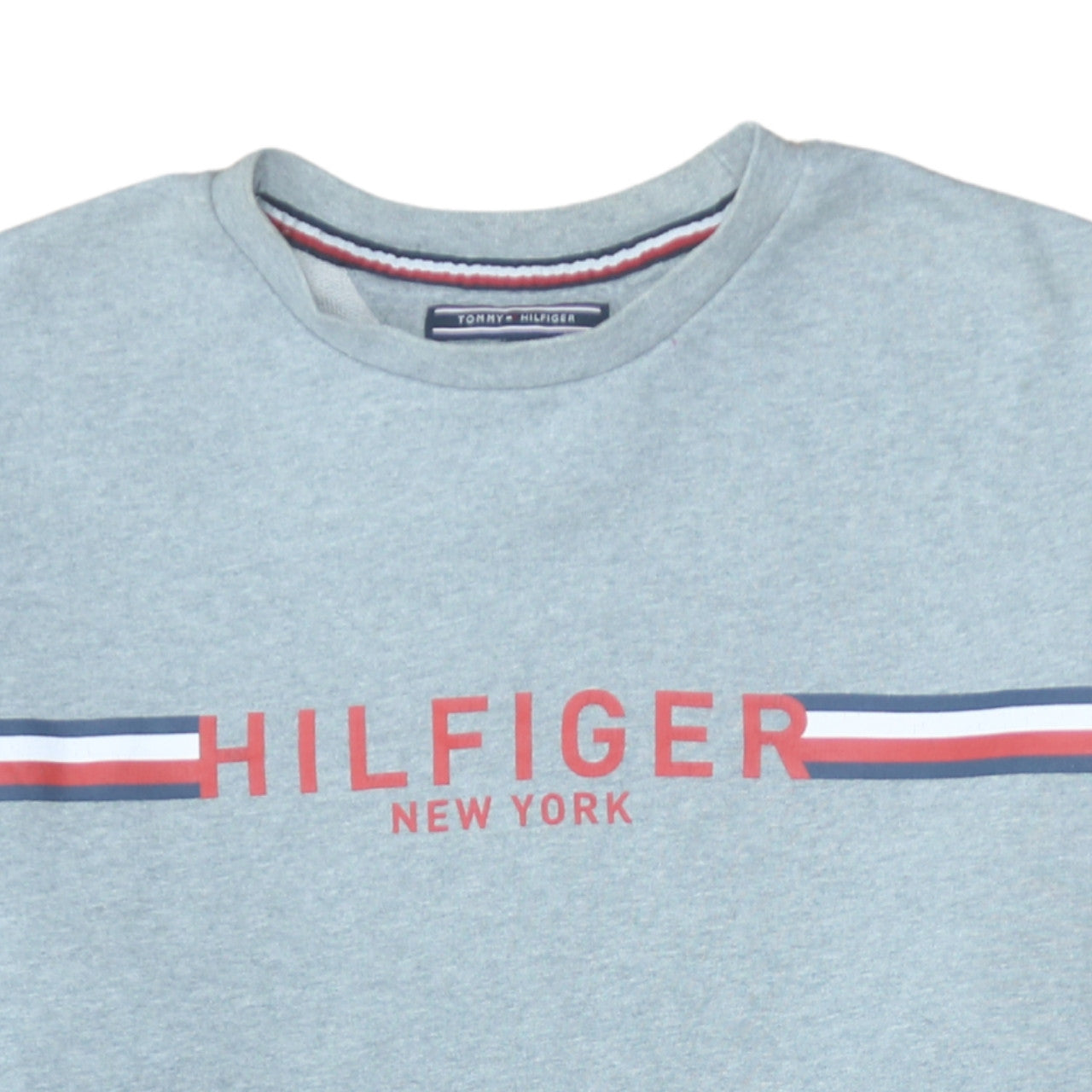 Add effortless style and comfort to your casual wardrobe with this Tommy Hilfiger men’s grey logo sweatshirt. Designed in a timeless pullover style, this sweatshirt features the iconic red, white, and navy 'Hilfiger New York' logo across the chest, instantly showcasing a classic college-inspired aesthetic. Made from soft 100% cotton jersey, it offers lightweight comfort that’s perfect for year-round wear, with ribbed trims at the cuffs and hem ensuring a secure fit and added warmth during cooler days. The crew neck design provides a versatile silhouette that pairs easily with jeans, chinos, or joggers, ideal for everyday styling from laid-back weekends to post-gym lounging. The medium-grey shade offers a neutral base that complements any outfit, while the vintage fit gives a slightly relaxed yet flattering shape suitable for modern tastes. Durable stitching and high-quality cotton fabric ensure long-lasting wear and easy maintenance, as it’s machine washable for convenient care. This Tommy Hilfiger sweatshirt is great for layering under jackets or over t-shirts, making it a reliable, versatile choice through spring, autumn, and winter seasons. With its classic branding and premium cotton craftsmanship, this sweatshirt combines effortless sophistication with casual comfort — a wardrobe essential for any modern man who values quality and understated style. Excellent pre-owned condition with no visible marks or signs of significant wear. A brilliant addition for fans of clean, minimalist streetwear or those looking for an authentic designer piece that blends comfort with timeless appeal. Secure yours today and bring iconic Tommy Hilfiger flair to your everyday look.