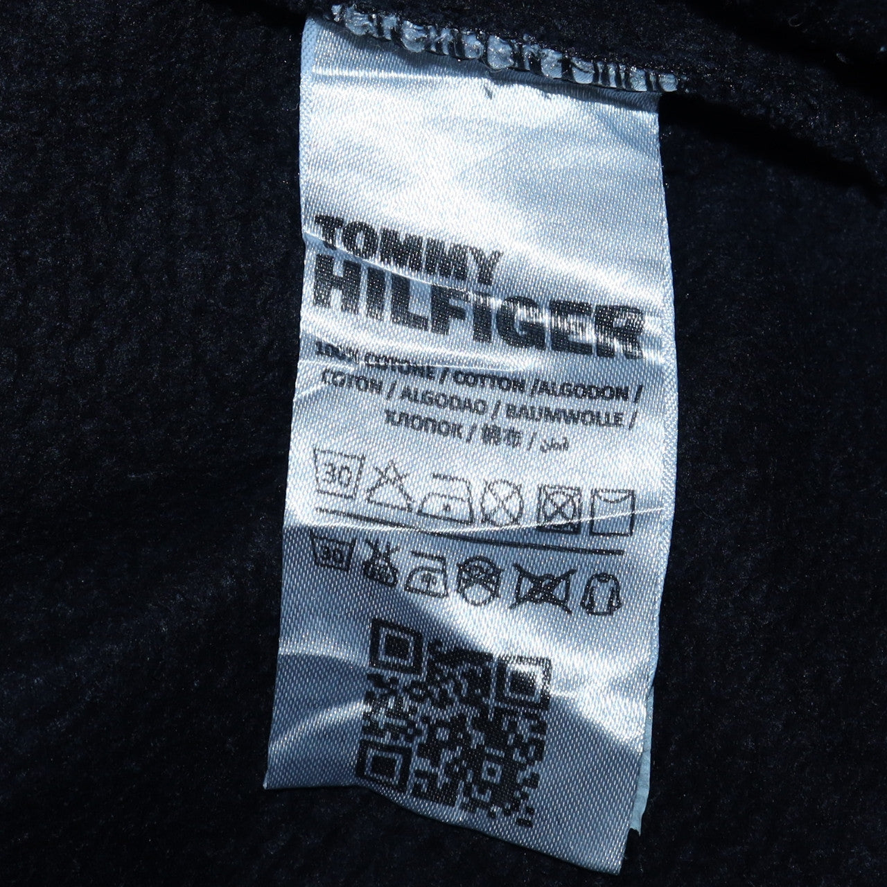 Upgrade your casual wardrobe with this stylish Tommy Hilfiger men's pullover hoodie in classic black. Crafted from soft 100% cotton fleece, this comfortable piece delivers both warmth and breathability, making it perfect for layering in cooler months or wearing on its own throughout the year. The front showcases the iconic Tommy Hilfiger embroidered logo for an understated yet instantly recognisable designer finish, while the relaxed regular fit ensures ease of movement for everyday wear.Featuring a roomy hood, ribbed cuffs and hem, and a practical kangaroo pocket, this hoodie combines functionality and timeless design. The fleece fabric feels soft against the skin, providing comfort during leisure time or while out and about. Ideal for autumn, winter and spring, this hoodie will pair effortlessly with jeans or joggers for a laid-back, modern look.Designed with durability in mind, the machine washable cotton ensures easy care and lasting wear. Although gently used, the hoodie remains in good condition with only a small mark on the sleeve that does not affect overall appearance or comfort.Whether you're lounging at home, meeting friends, or adding an extra layer for outdoor activities, this black Tommy Hilfiger hoodie is a versatile essential you'll reach for time and again. A perfect choice for men who value quality, comfort, and timeless style with a premium designer edge.