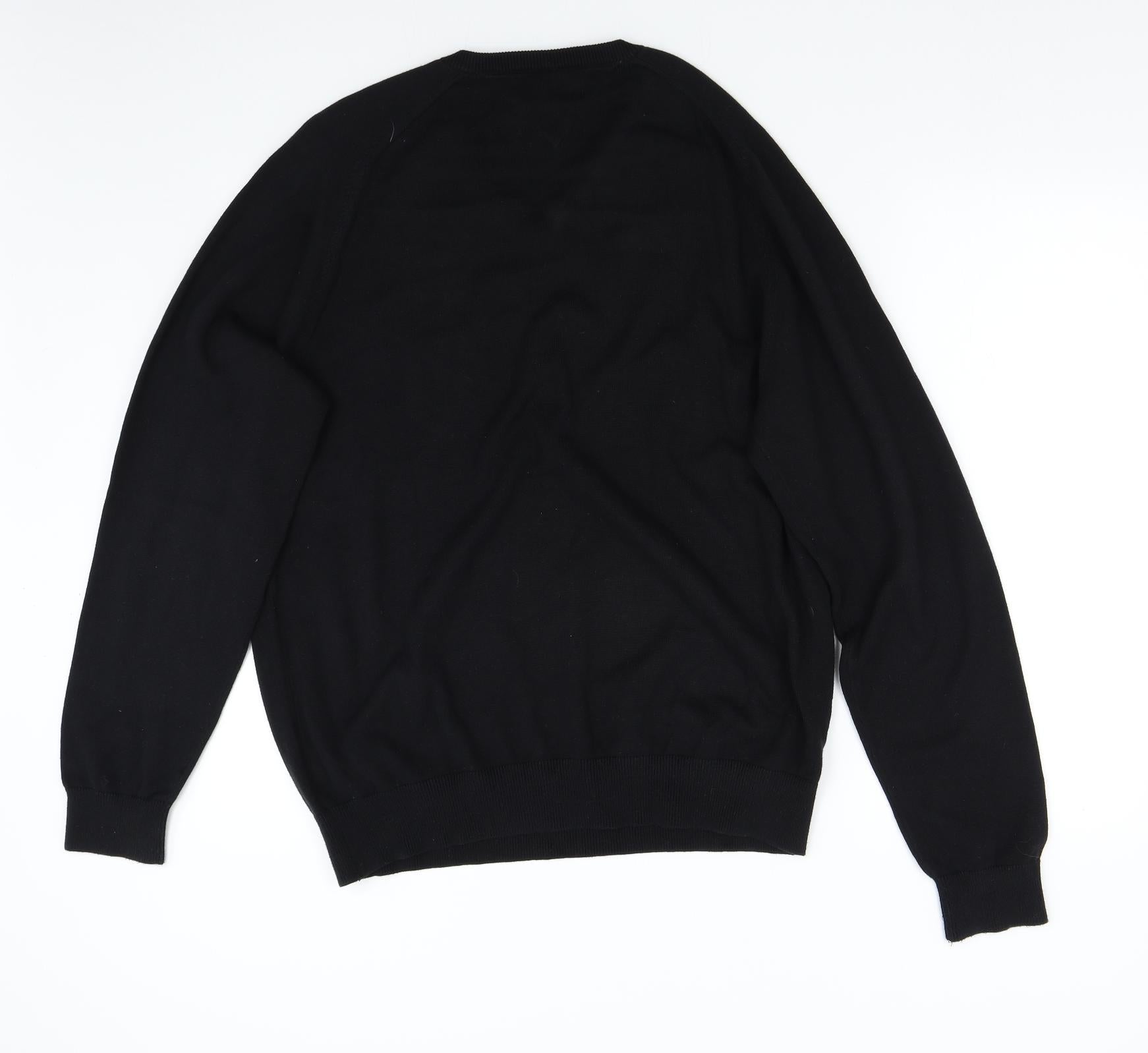Tommy Hilfiger Men's Black Cotton V-Neck Jumper Size L