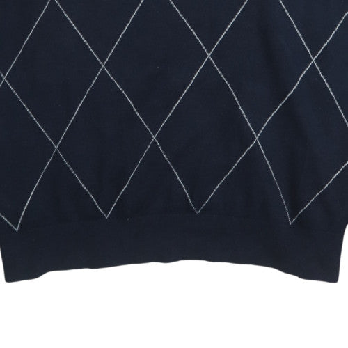 Men's Blue Argyle V-Neck Pullover Jumper XXL