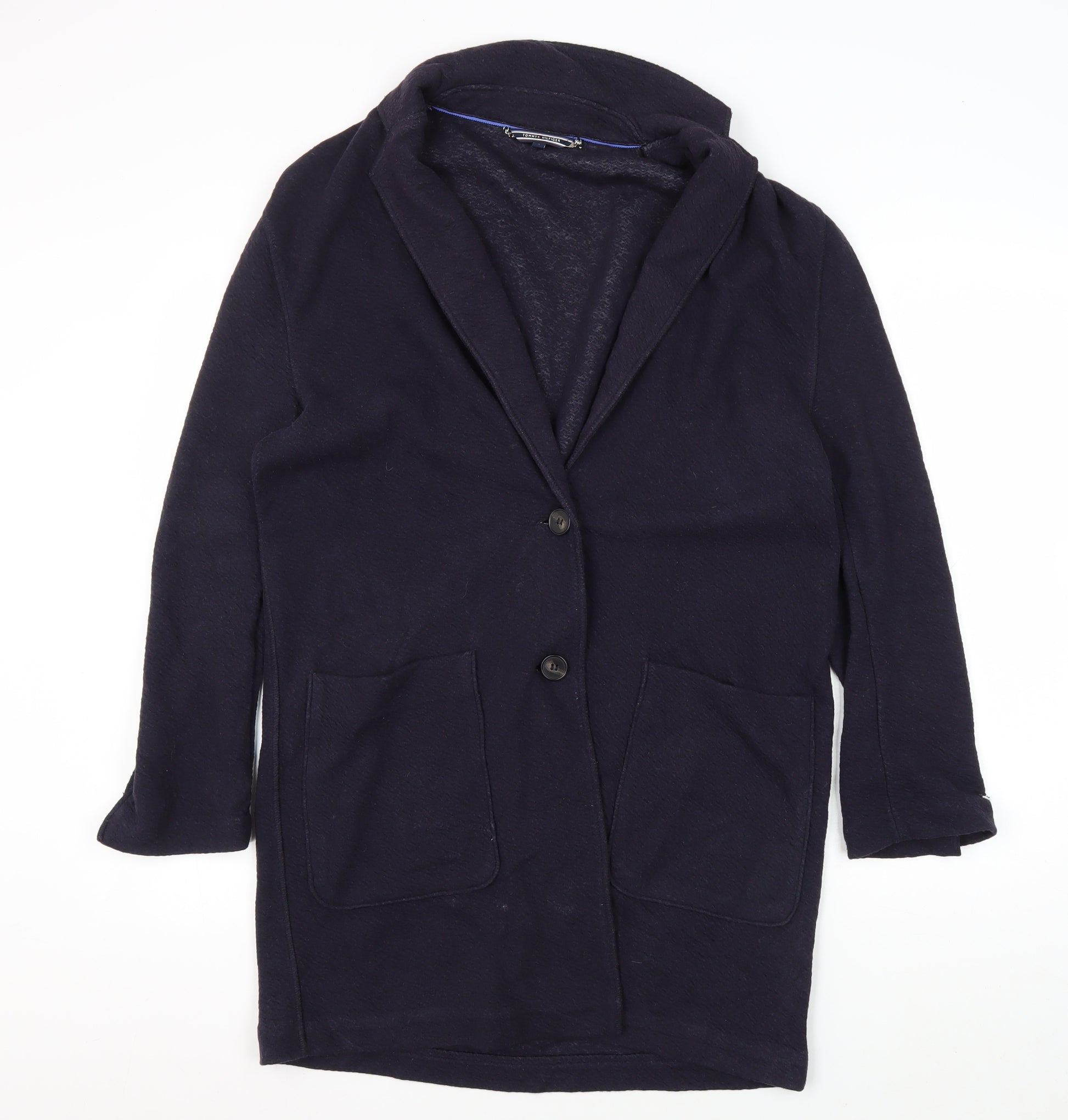 Embrace timeless style with this Tommy Hilfiger men's coat, perfect for the colder months of autumn and winter. Crafted from a blend of cotton and polyester, this blue coat offers comfort and durability. The regular fit ensures ease of movement, while the long length adds to its classic appeal. Ideal for casual occasions, it features a shawl collar that gives it a distinctive look. Accented with buttons, this coat has a collared feature that enhances its elegance. Despite being used, it is in excellent condition with no visible defects, ensuring you stay fashionable and warm without compromising on quality. Invest in this staple piece for your wardrobe and enjoy a sophisticated yet understated style.