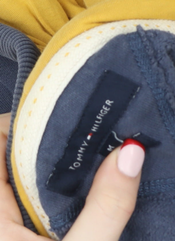 Upgrade your casual wardrobe with this stylish Tommy Hilfiger men's blue full zip hoodie, designed for both comfort and timeless appeal. Featuring the iconic Tommy Hilfiger logo on the chest, this garment captures the brand’s renowned balance between classic American casual and premium craftsmanship. The hoodie is made from a soft jersey fabric blend of 90% cotton and 10% elastane, providing breathable comfort with just the right stretch for an easy fit. The rich blue tone is accented by a neat contrast inner hood lining and signature logo details on the sleeve cuff, adding subtle branded style. Featuring a full zip front closure, adjustable drawstring hood, and two front kangaroo-style pockets, this hoodie offers both practicality and versatility for everyday wear. The ribbed cuffs and hem ensure a secure and comfortable fit while retaining classic styling. Designed for the regular fit wearer, this hoodie is ideal for layering during cooler months or as a standalone piece for those casual days in autumn, spring or winter. Whether worn over a simple tee or paired with jeans, this piece effortlessly complements any wardrobe. Conditioned in very good used state with light natural fading consistent with gentle wear, this hoodie remains in great shape overall. Perfect for day-to-day wear, lounging, light workouts, or weekend outings, this Tommy Hilfiger hoodie delivers a blend of reliable comfort and refined casual fashion. A must-have for anyone who appreciates quality clothing with an understated yet distinctive edge.