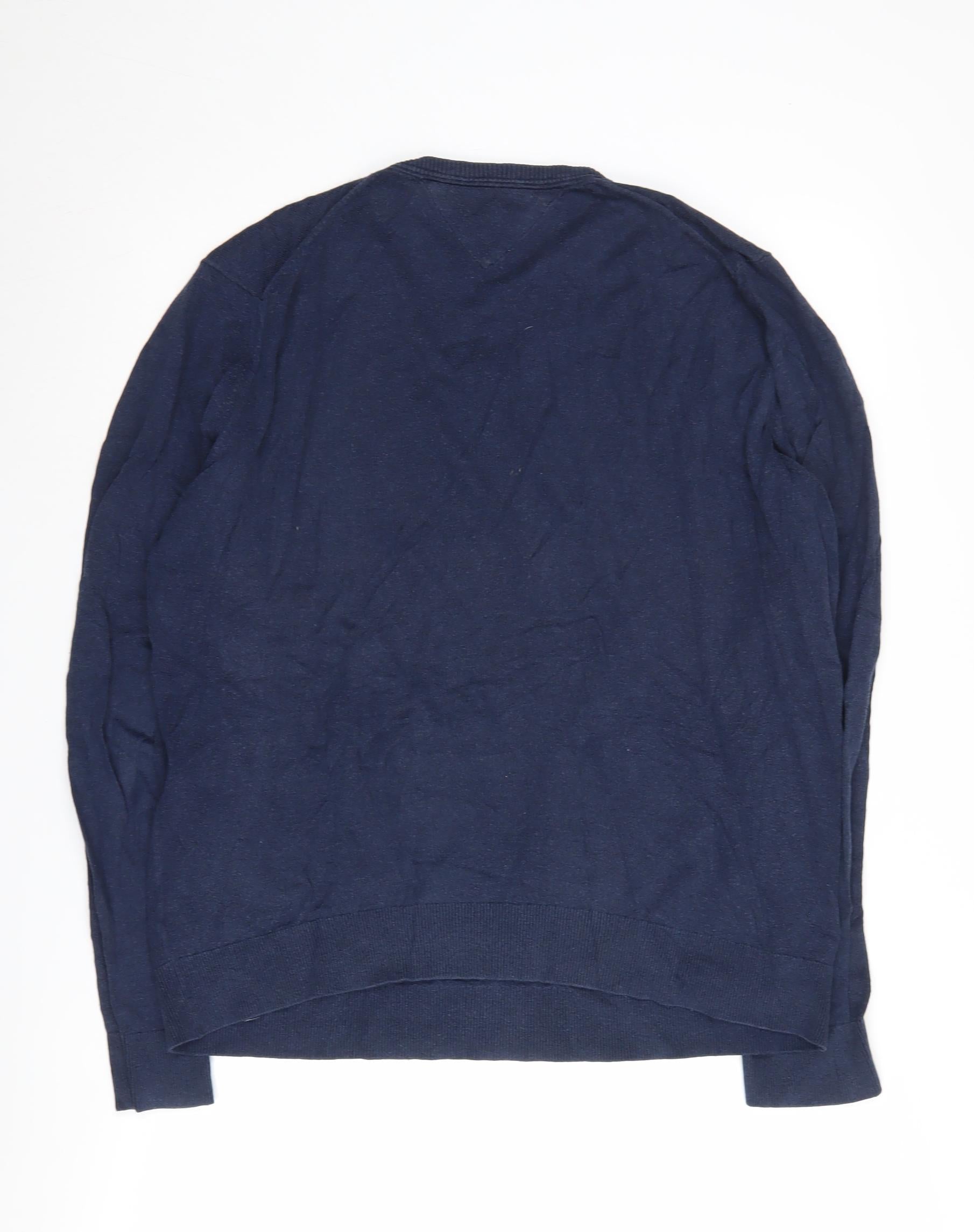 Tommy Hilfiger Men's Green V-Neck Cotton Pullover Jumper L