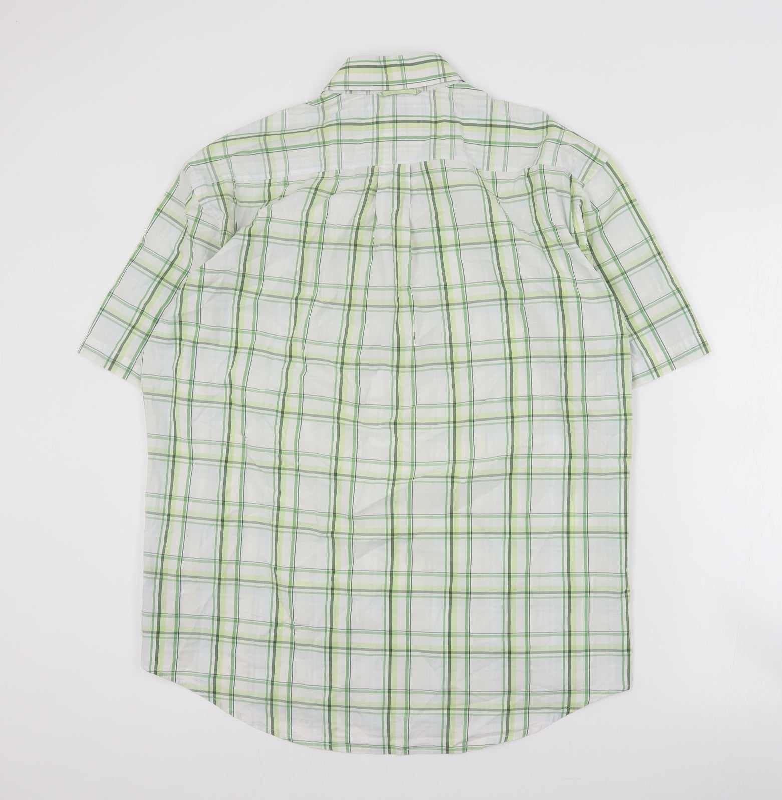 Mens Green Plaid Cotton Button-Up Size L Collared Button