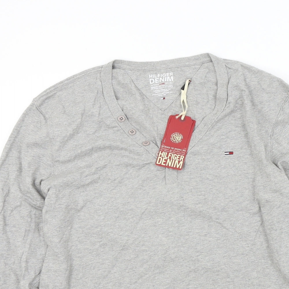 Tommy Hilfiger Men's Blue V-Neck Cotton Silk Long Sleeve T-Shirt M