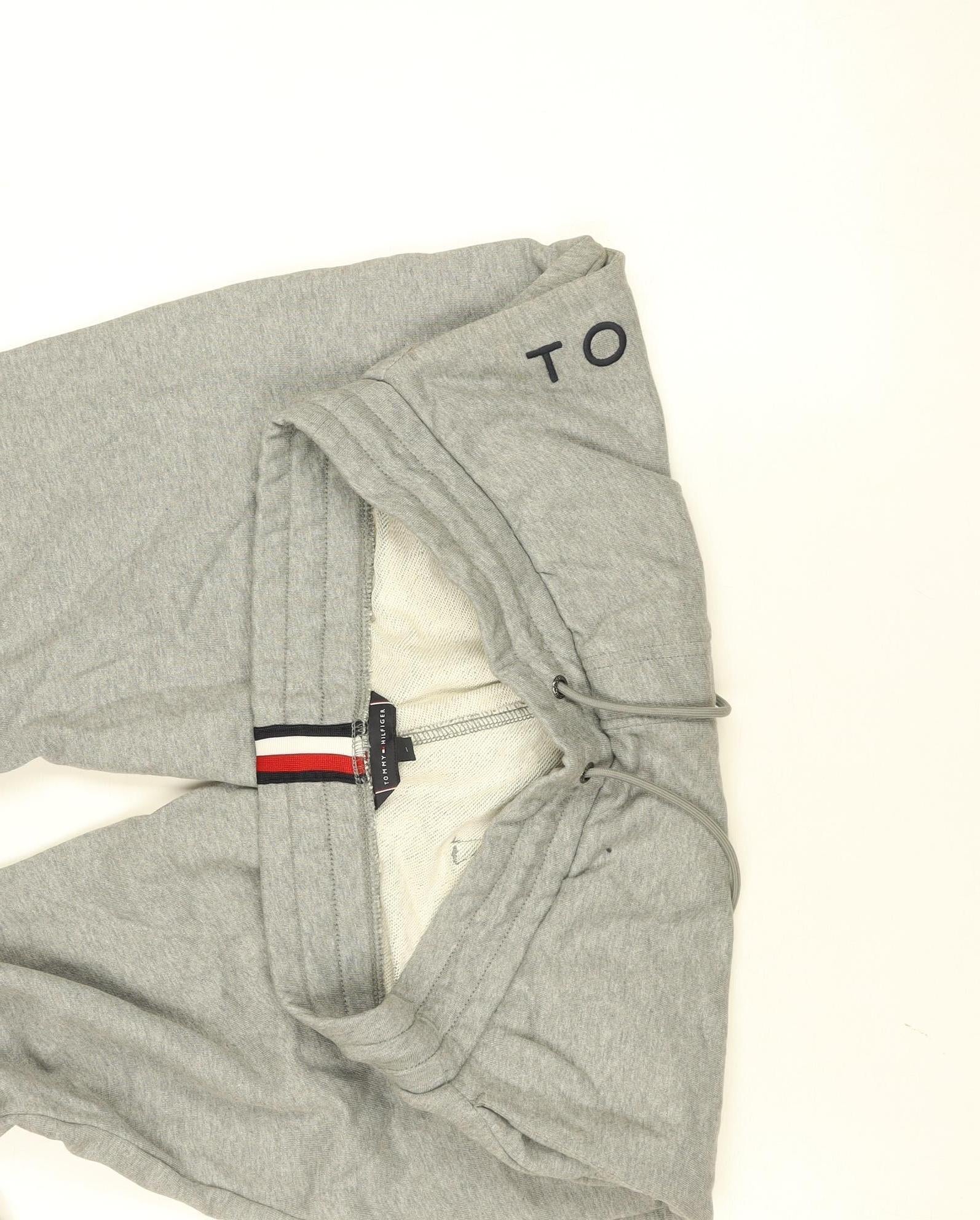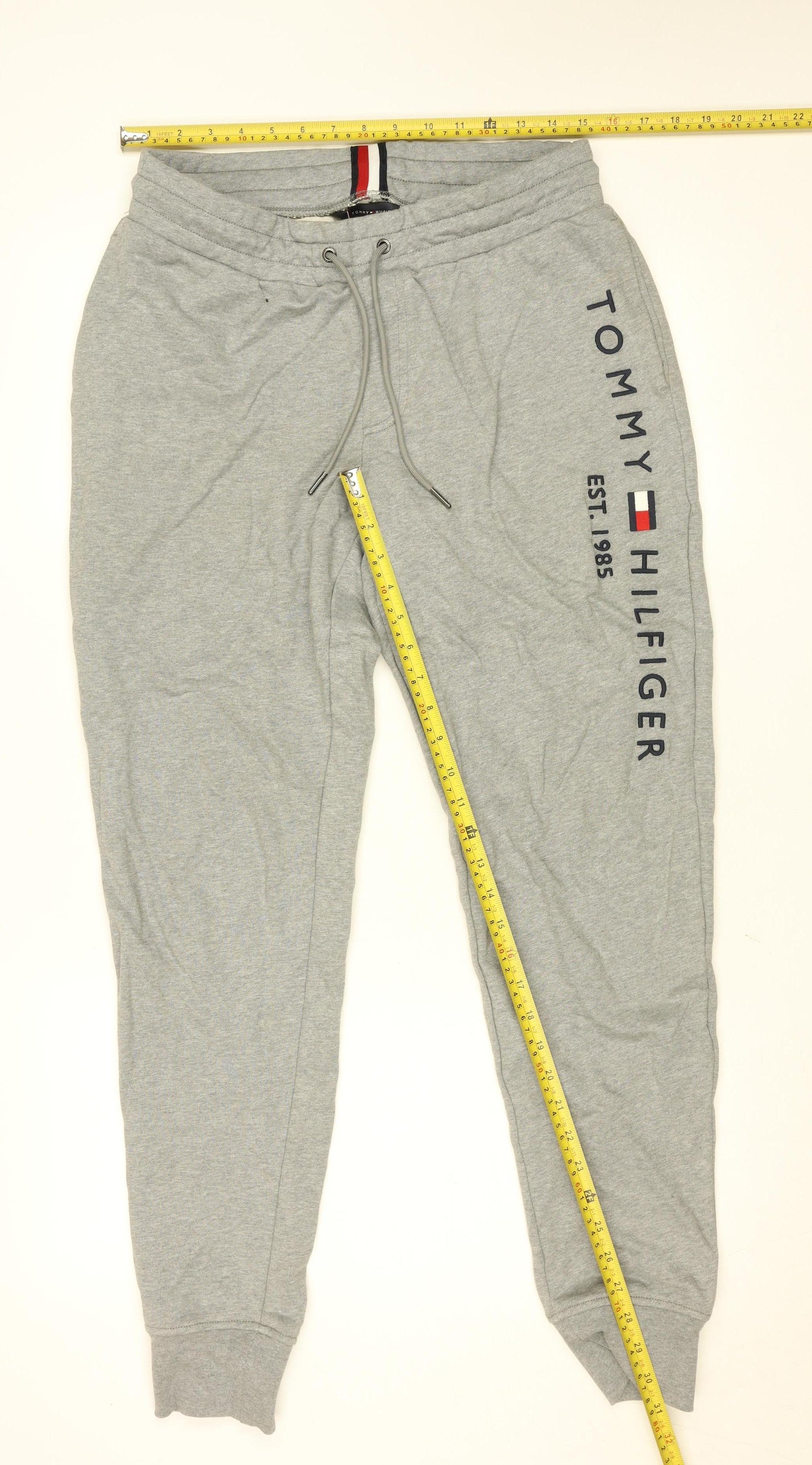 Step into laid-back comfort and modern style with these Tommy Hilfiger men’s jogger sweatpants. Crafted from soft 100% cotton jersey fabric, these sweatpants deliver an exceptional balance of breathability and ease for daily wear or athletic activity. The heather grey tone is accented by Tommy Hilfiger’s signature embroidered flag logo and bold printed branding down the leg, giving these trousers a sleek, sporty aesthetic suitable for both lounge and activewear looks. Designed with an elasticated waistband and adjustable drawstring closure, these trousers provide a secure yet flexible fit. The tapered leg with ribbed cuffs ensures a modern silhouette that stays tidy through movement, while the soft inner lining offers unparalleled comfort for extended wear. These joggers feature convenient side pockets alongside a rear patch pocket for everyday essentials, making them both functional and stylish.Ideal for gym sessions, morning runs, or casual downtime, the lightweight cotton material keeps you cool and comfortable, whether indoors or outside. The athletic yet relaxed fit flatters all body types without compromising on comfort, making these joggers a versatile wardrobe essential. Perfect for pairing with a plain tee, hoodie, or bomber jacket, they bring effortless sophistication to any casual outfit.Durable and easy to care for, these Tommy Hilfiger joggers are machine washable and built to maintain their shape and softness over time. Their minimalist design with premium detailing makes them an excellent choice for men seeking stylish activewear that combines performance, comfort, and brand prestige. In excellent condition with minimal signs of wear, these joggers embody quality craftsmanship and understated luxury—an ideal addition for any athleisure enthusiast or fashion-conscious individual looking for comfort and authentic Tommy Hilfiger style.