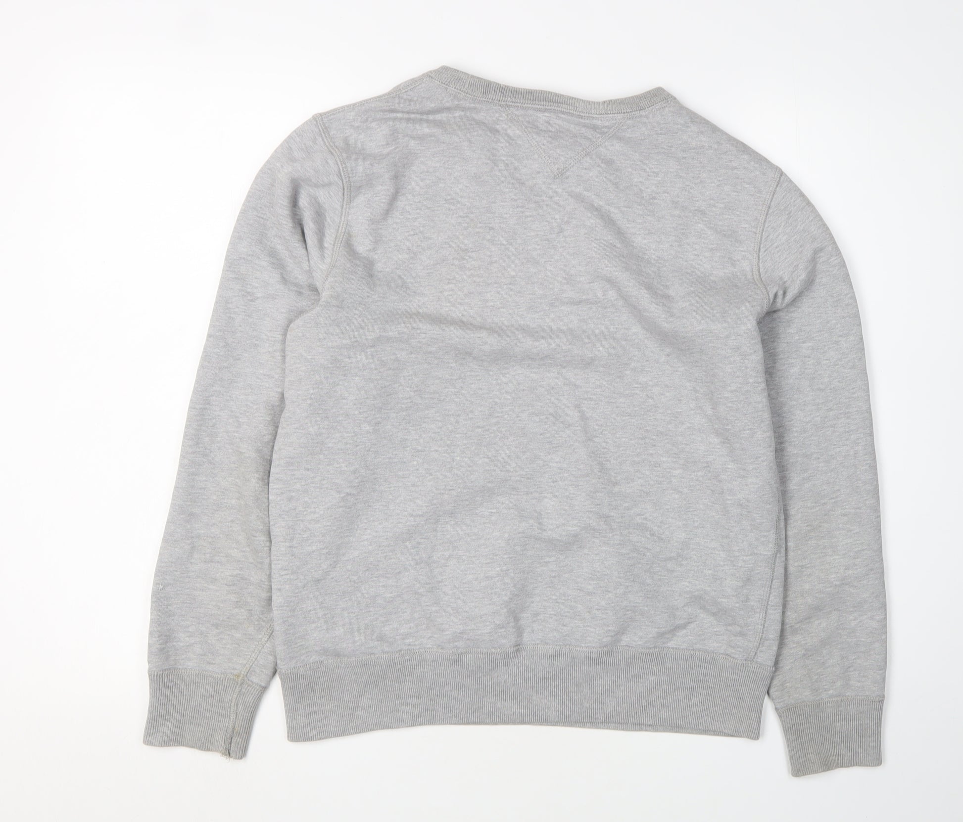 Embrace understated style with this Tommy Hilfiger Men's Grey Pullover Sweatshirt, available in size small and crafted from 100% cotton for an ultra-comfortable fit. This versatile piece combines classic design with everyday practicality, featuring a crew neck and long sleeves, perfect for layering through all seasons. The iconic Tommy Hilfiger logo graces the sleeve, adding a touch of brand recognition to this otherwise minimalist piece. Ideal for a relaxed day out or casual gatherings, this regular-fit sweatshirt allows you to enjoy both comfort and style without compromise.With a subtle grey hue, this sweatshirt offers maximum versatility, allowing you to pair it effortlessly with denim, chinos, or shorts. Whether you're heading to the gym, grabbing coffee with friends, or enjoying a leisurely walk, this sweatshirt ensures you stay on-trend. Engineered with a knit fabric type, its breathable nature makes it an ideal go-to piece for transitional weather throughout the year. Enjoy the ease of garment care with its machine washable design, ensuring long-lasting wear with minimal maintenance.This sweatshirt falls under the 'Very Good' condition category, with slight wear and a minor hole on the sleeve, adding character and a lived-in feel without compromising its stylish appeal. Although not brand new, its integrity and charm remain intact for a fashionable wardrobe essential that stands the test of time. Whether you’re a fan of the brand's rich heritage or just discovering its classic aesthetic, this Tommy Hilfiger sweatshirt is an easy way to elevate your everyday style. Available at a competitive price, it offers excellent value for money and a fashion-forward addition to any gentleman's collection.