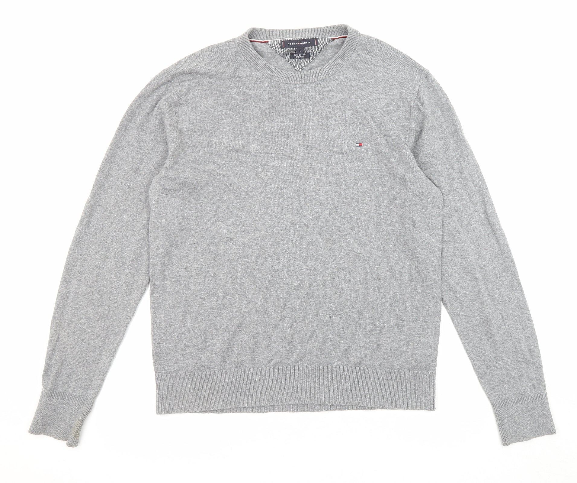 Mens Grey Round Neck Cotton Pullover Jumper Size L Long Sleeve