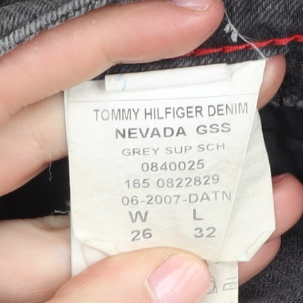Upgrade your wardrobe with these stylish Tommy Hilfiger grey denim jeans, designed for men who appreciate both fashion and comfort. Featuring a straight-leg style and crafted from high-quality, stretchy denim, these jeans offer a regular fit that ensures comfort and ease of movement throughout the day. The versatile charcoal wash makes them suitable for various occasions, perfect for the autumn and winter seasons.The jeans come in a waist size of 26 inches and an inside leg measurement of 32 inches. Made from 98% cotton and 2% elastane, they promise durability and a comfortable fit. The classic 5-pocket design adds both style and functionality, providing space to carry essential items.These Tommy Hilfiger jeans also feature a convenient button closure and a mid-rise, offering a modern, streamlined look. They are machine washable, ensuring easy care and maintenance. While pre-owned, they are in very good condition with only slight wear on the edges, ready to become a staple piece in your collection.Show off your sense of style with these jeans, ideal for casual or smart-casual occasions. Pair them with a crisp shirt or a casual tee to make a fashion-forward statement. Don't miss out on adding these versatile jeans to your collection, offering a blend of comfort, style, and the classic Tommy Hilfiger brand integrity.