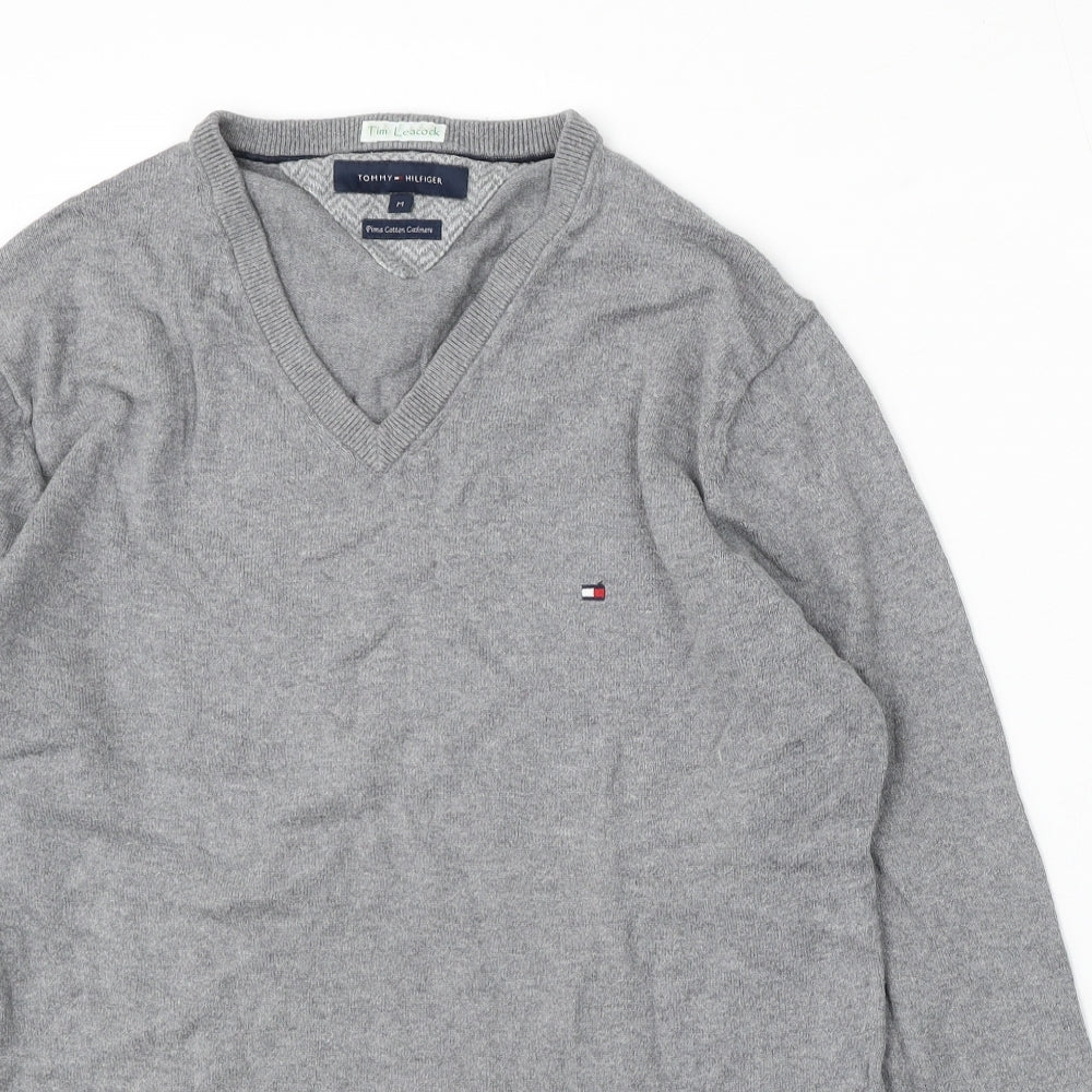 Mens Grey V-Neck Cotton Pullover Jumper Size M