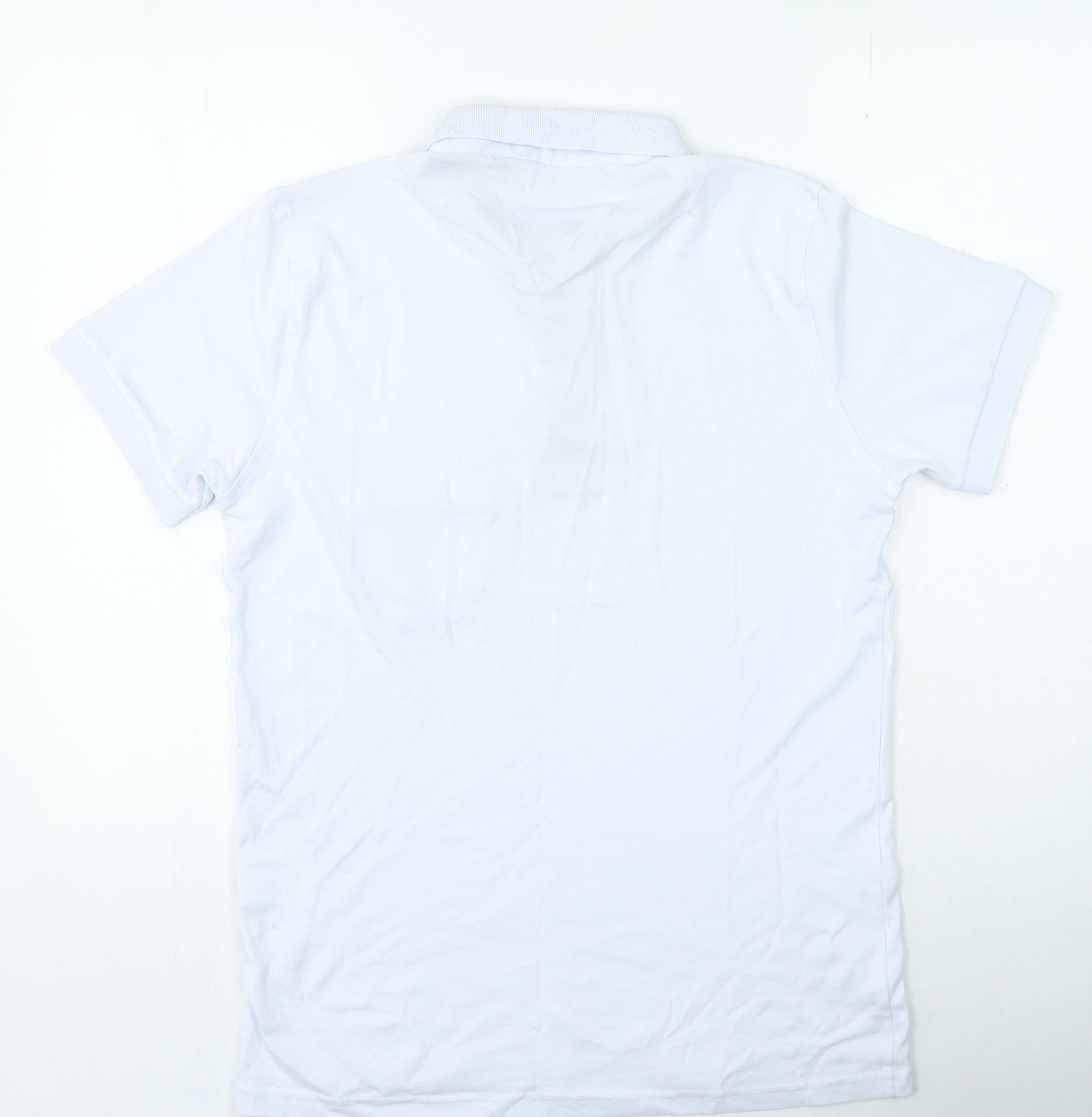 Mens White Cotton Polo Size L Collared Button